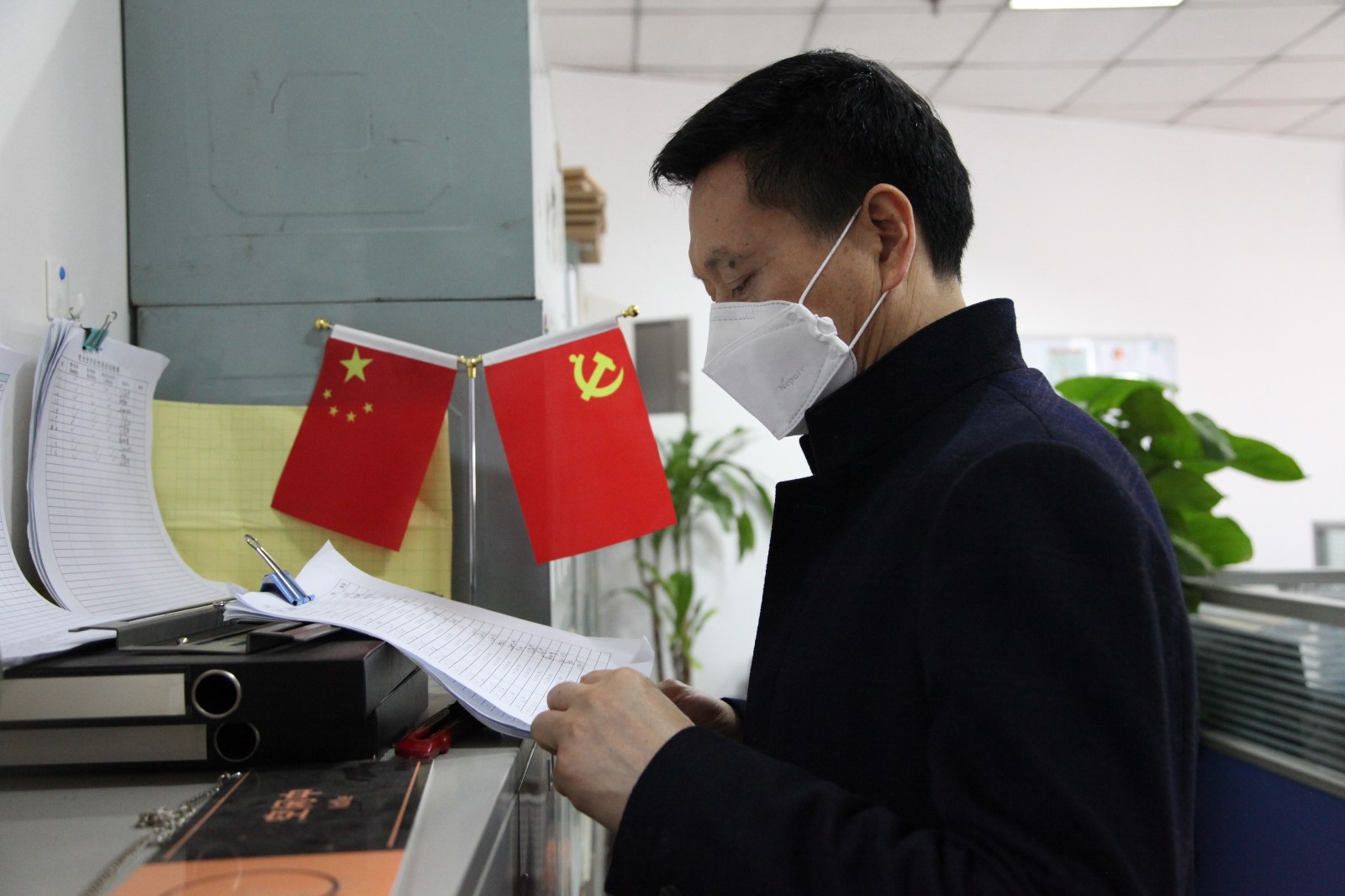 冉蘭平一行經過物業、公司掃碼亮碼、測溫、消毒、登記等疫情防控關鍵環節,沉浸式體驗了對外來人員的疫情管控措施。隨后進入公司,隨機抽問員工是否了解公司防控要求和個人防護措施,對公司開展疫情防控工作宣貫及防護知識宣傳的落實情況進行檢驗;對員工口罩佩戴、防疫物資儲備、消毒液存放狀態等情況進行實地查看;著重對公司疫情防控中責任落實、防控具體要求、人員管理、信息報送、場所防疫管理等措施及執行情況進行詳細了解,并查看相應文件資料。