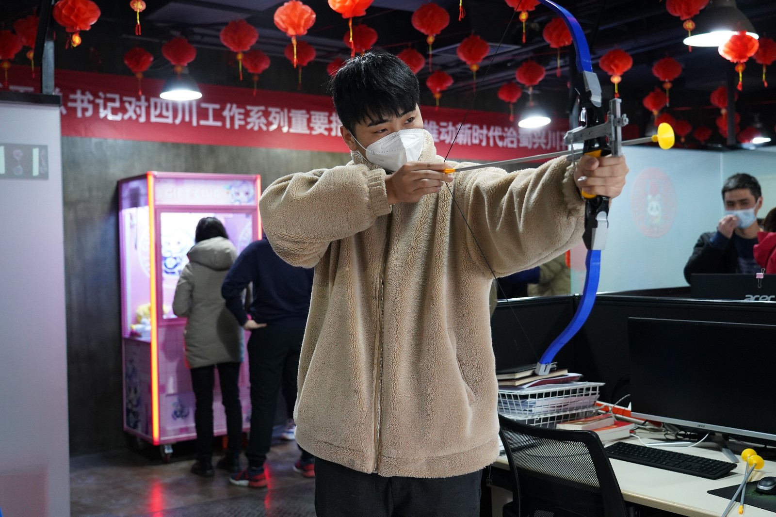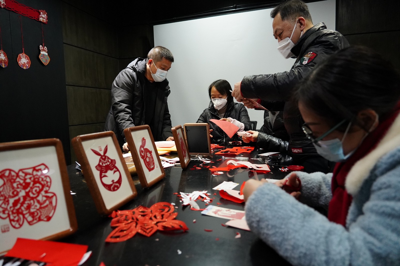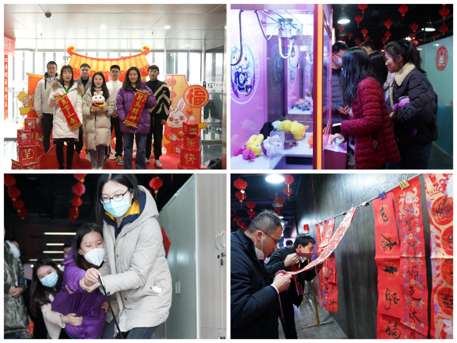 玉兔賀歲迎新年,生肖兔的形象自然成為新年中不可或缺的元素。在非遺體驗區(qū)和新年祈福區(qū),傳統(tǒng)剪紙、春聯(lián)、燈籠技藝與生肖兔的結(jié)合,更是把中華傳統(tǒng)文化體現(xiàn)得淋漓盡致。精美剪紙活靈活現(xiàn)、揮毫潑墨筆走龍蛇,大家紛紛展示自己“得意之作”,表達(dá)辭舊迎新、接祥納福的美好祝愿。而游戲互動區(qū)的“萌力十足娃娃機”“穿越火線”“戰(zhàn)弓烈焰” 等趣味游戲,不僅讓大家得到了身心放松、精神愉悅,也展現(xiàn)著川投能源人的團結(jié)協(xié)作和良好風(fēng)貌。