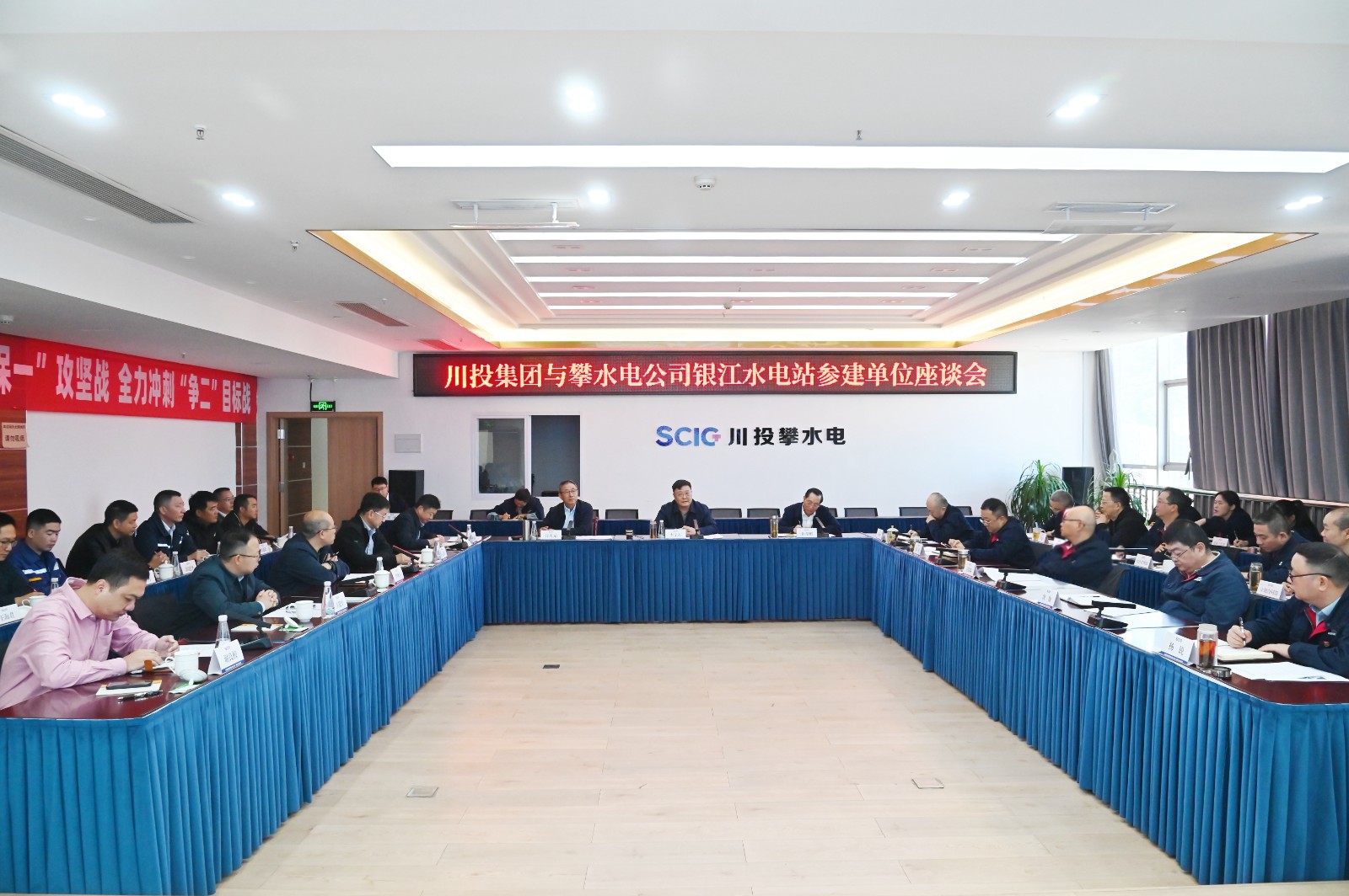 長(zhǎng)江設(shè)計(jì)集團(tuán)高級(jí)咨詢、銀江項(xiàng)目總工汪慶元,水電五局黨委委員、副總經(jīng)理李法海,貴陽院/監(jiān)理公司黨總支書記、副總經(jīng)理石志勇,水電十四局建筑工程公司副總經(jīng)理王建平,廣東源天西南公司黨支部書記、總經(jīng)理謝良校及攀水電公司領(lǐng)導(dǎo)班子成員、相關(guān)人員參加會(huì)議。
