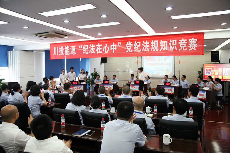 激情七月蓮花香,紀法銘記享安康。7月25日,由川投能源紀委主辦、交大光芒黨總支承辦的川投能源“紀法在心中”黨紀法規知識競賽在交大光芒生產基地會議室隆重舉行。集團公司紀檢監察部趙艷到會指導,川投能源領導班子成員、所屬企業黨政一把手、川投能源本部全體黨員和交大光芒部分黨員代表等共計50余人到現場觀看了知識競賽。川能源本部機關三個支部、所屬企業天彭電力、交大光芒等五個代表隊參加了紀法知識競賽。舉辦此次競賽活動,旨在促進全體黨員干部自覺以習近平新時代中國特色社會主義思想統領企業改革發展工作,用中央和省委最新決策部署引領思想行動,用黨紀條規規范廉潔從業行為,為川投能源健康可持續發展提供堅強的政治紀律保障。