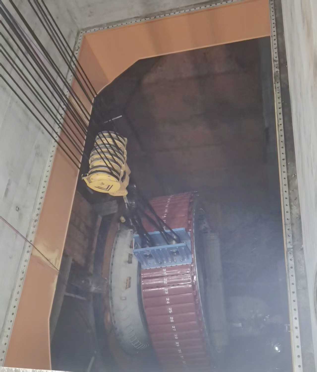 此次吊裝的6號機組轉(zhuǎn)子重量達(dá)230.5噸,直徑8.4米,是名副其實的“鋼鐵巨環(huán)”,其精準(zhǔn)就位對施工技術(shù)與安全保障提出極高要求。為確保吊裝萬無一失,所屬攀水電公司與參建各方做足了準(zhǔn)備,聯(lián)合開展多輪檢查,全面排查橋機、吊具等關(guān)鍵設(shè)備,同步組織技術(shù)交底和模擬演練,把安全措施落實到每個環(huán)節(jié)。吊裝過程中,這臺龐然大物在橋機手的精準(zhǔn)操控下平穩(wěn)起吊、緩緩移動,最終以毫米級精度穩(wěn)穩(wěn)落入機坑,與發(fā)電機大軸精準(zhǔn)對接。全程監(jiān)測數(shù)據(jù)顯示所有參數(shù)均符合設(shè)計標(biāo)準(zhǔn),本次吊裝任務(wù)圓滿完成。