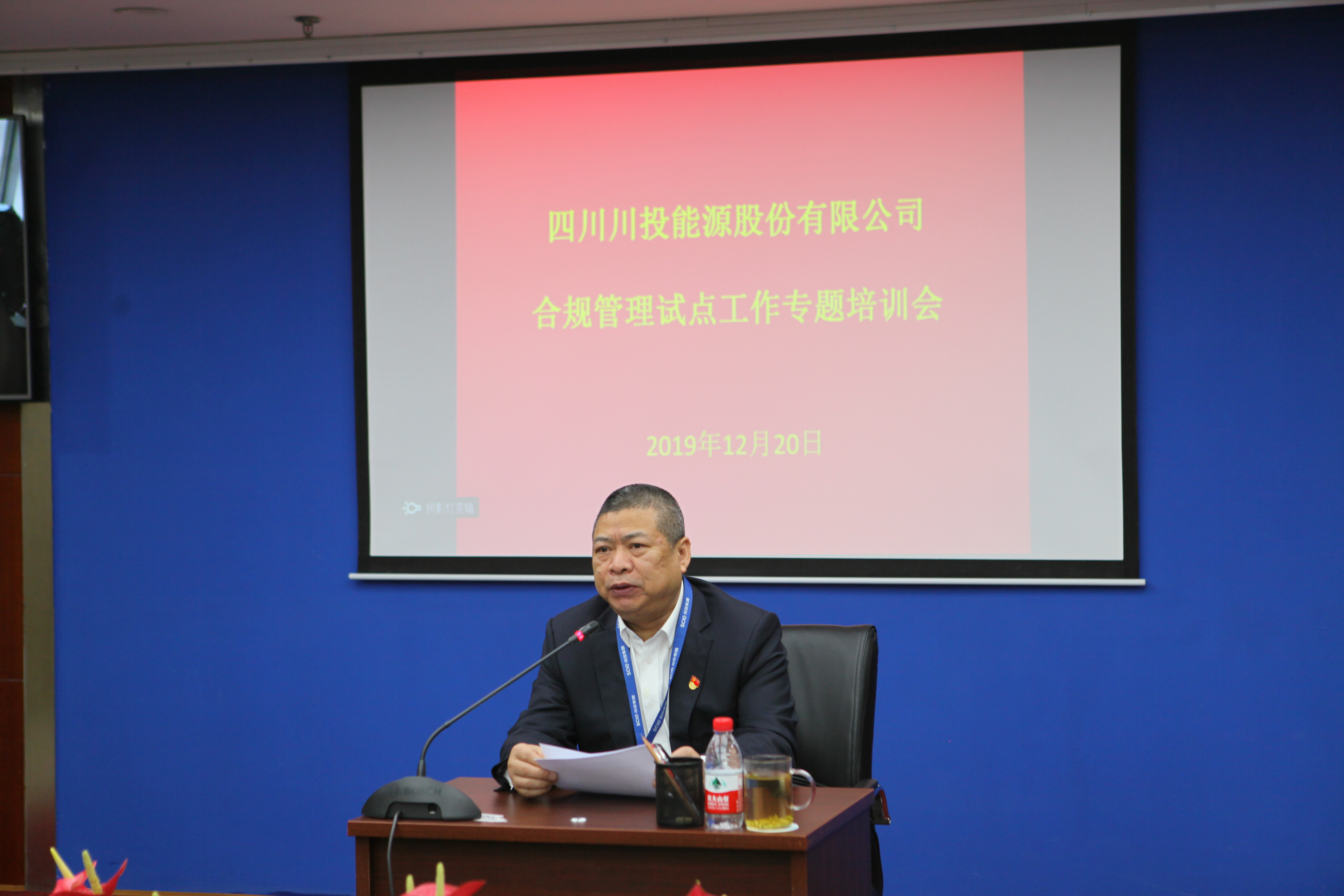 12月20日,川投能源召開合規管理試點工作專題培訓會。公司黨委書記、總經理楊洪出席會議并講話,集團公司副總法律顧問、法律事務部部長楊帆同志到會指導,公司黨委委員、紀委書記、總法律顧問冉蘭平主持會議,并宣讀集團公司《關于同意川投能源合規管理試點工作實施方案的通知》。