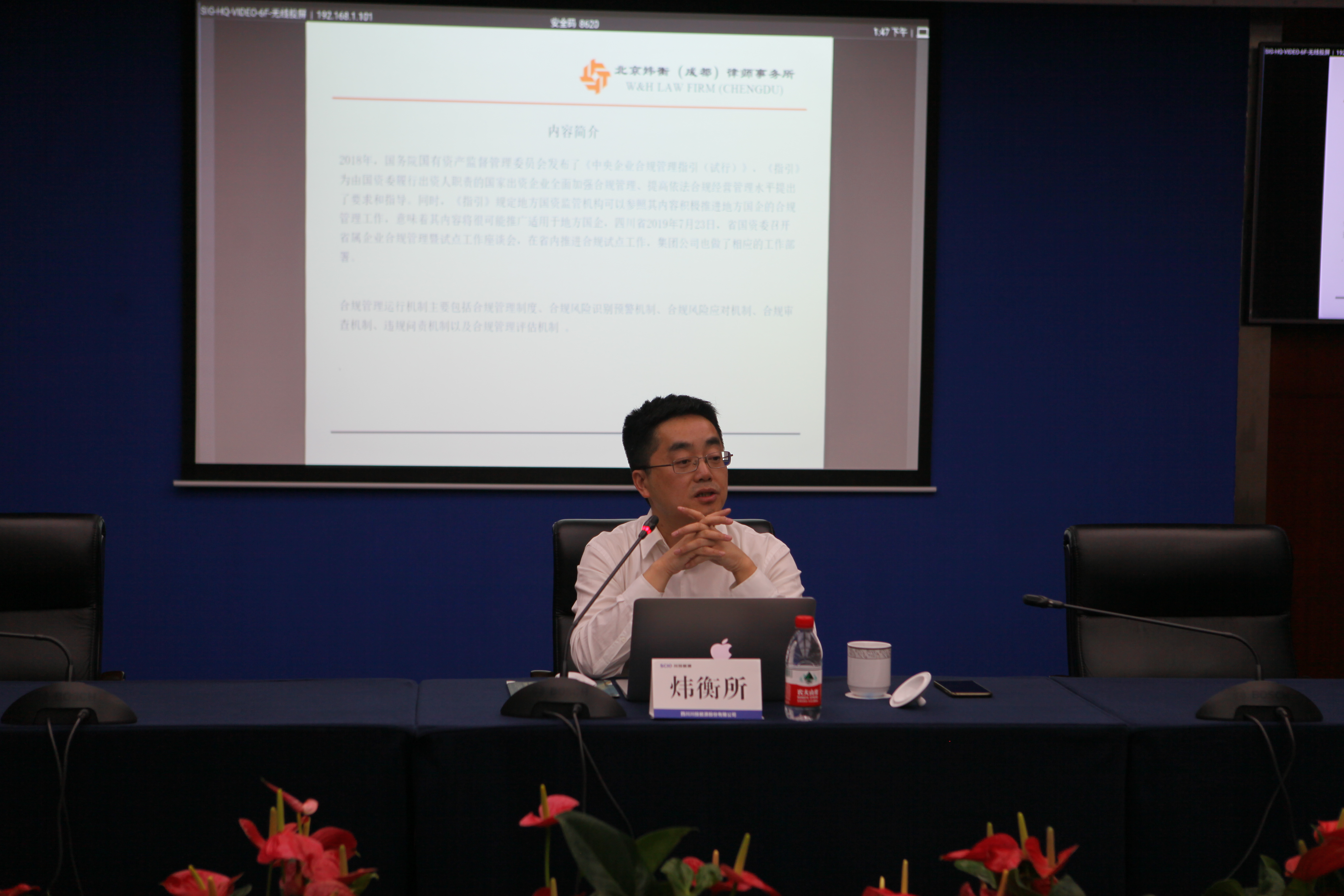 會后,北京煒衡(成都)律師事務所張強律師作合規管理專題培訓。公司本部全體員工、各所屬公司主要領導、分管法治建設(合規管理、風險防控)的負責人及法務工作人員共計60余人以現場和視頻會議方式參會。