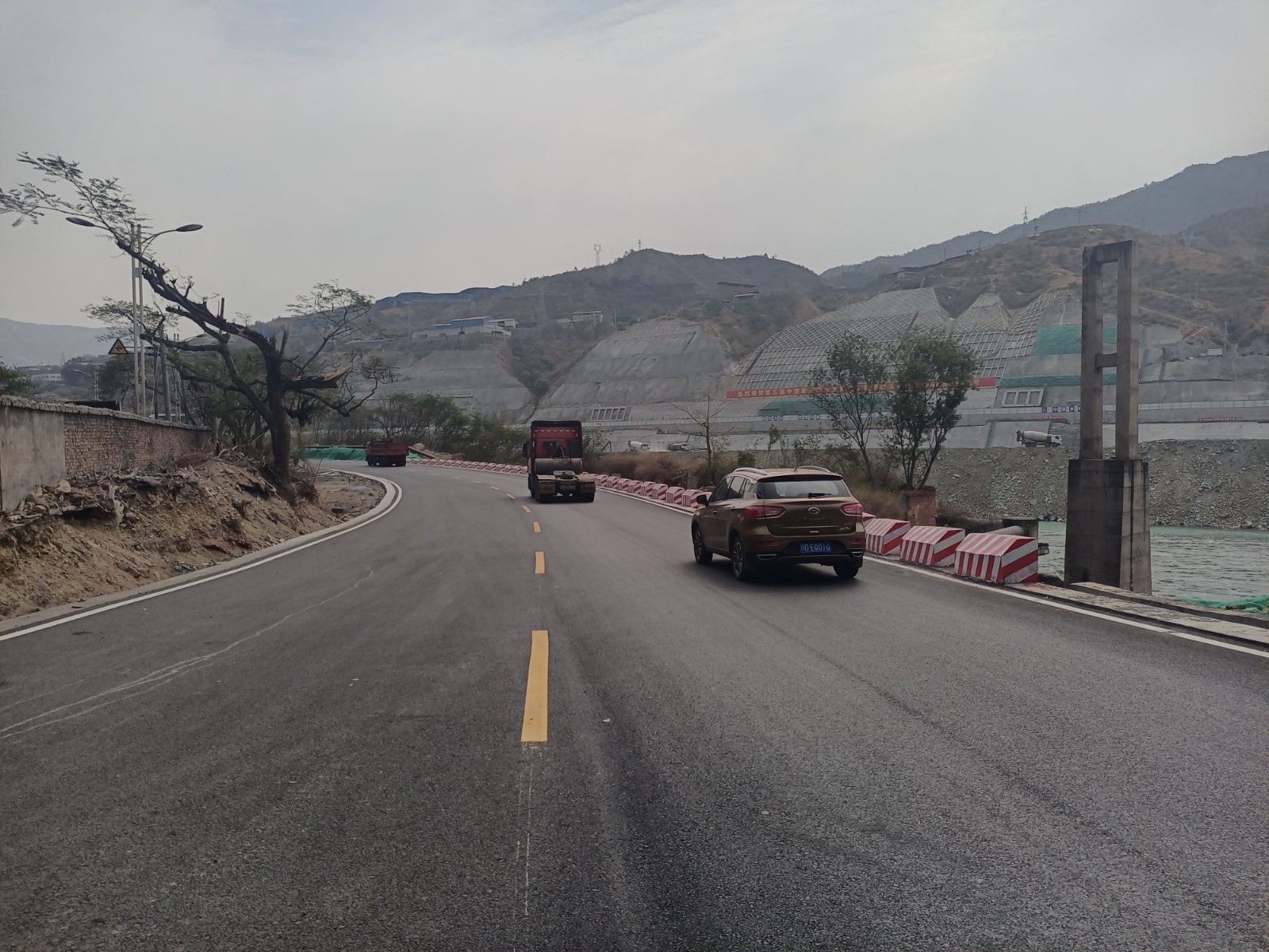據悉,銀江水電站左岸建筑物布置占壓現有G353國道,需結合左岸壩肩邊坡開挖進行永久改線。左岸壩肩邊坡開挖及G353國道永久改線施工期間,需通過G353國道改線臨時公路分流地方交通。此次通車的G353國道改線臨時路線路長約為0.41km,道路線形采用二級公路標準,雙車道,路面寬度11.0m,路基寬度12.0m,瀝青混凝土路面。