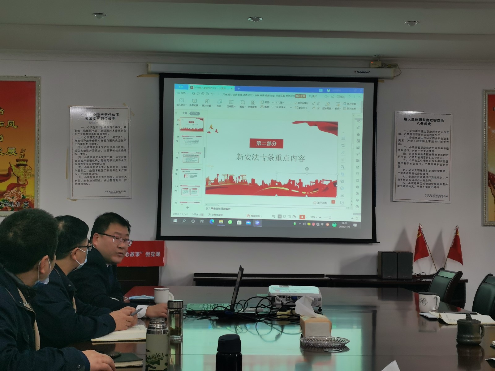 強律師對新修訂《安全生產法》的十條重點內容、十大亮點和新舊法律條款修訂內容進行了深入淺出的解讀,并結合相關案例進行剖析,使大家在學習中深刻領會到黨和國家對強化安全生產管理的重視程度。大家紛紛表示對新修訂的《安全生產法》作為今后強化安全管理理論依據的重要性和必要性也有了更直觀的認識,此輪宣貫達到預期效果。