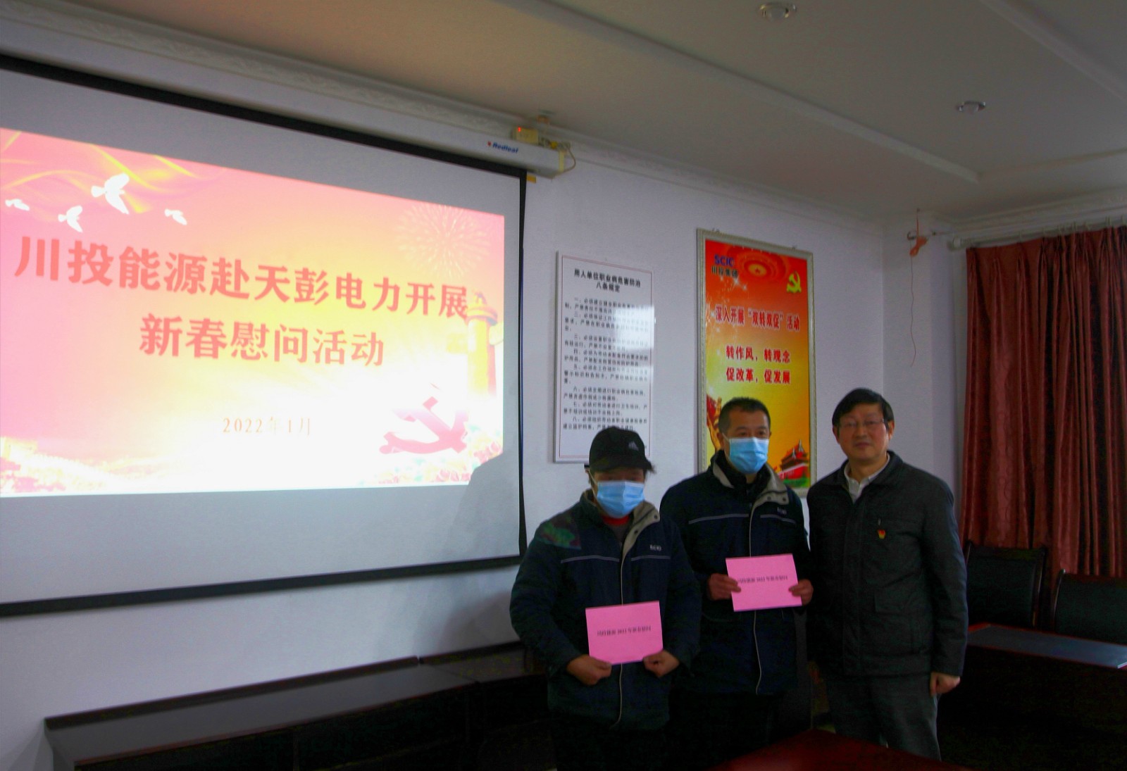會后,考核組與公司主要領導、員工代表開展了個別談話,廣泛征求意見,并對照考核評分體系,分組對各類工作臺賬及相關佐證材料進行了現場查閱;深入生產一線,重點檢查了歲末年初安全環保、疫情防控、風險管控及隱患排查治理、紀律作風、“回頭看”整改等工作落實情況。楊平還代表川投能源向困難職工送上了寒冬里的關愛和溫暖。