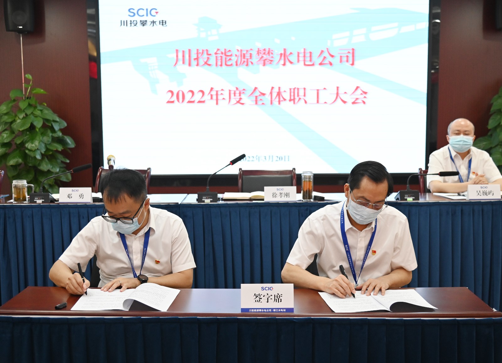 大會最后審議通過了《工資集體合同》和《女職工權益保護專項合同》,川投能源副總經理、公司黨總支書記、董事長徐孝剛分別與工會主席鄧勇、女工委員高力梅簽署了上述集體合同,充分體現了公司高度重視員工福利和女職工切身利益,凝聚了人心,振奮了精神,鼓舞了士氣,堅定了信念,為切實推動銀江水電站工程建設和公司高質量發展貢獻了工會力量。