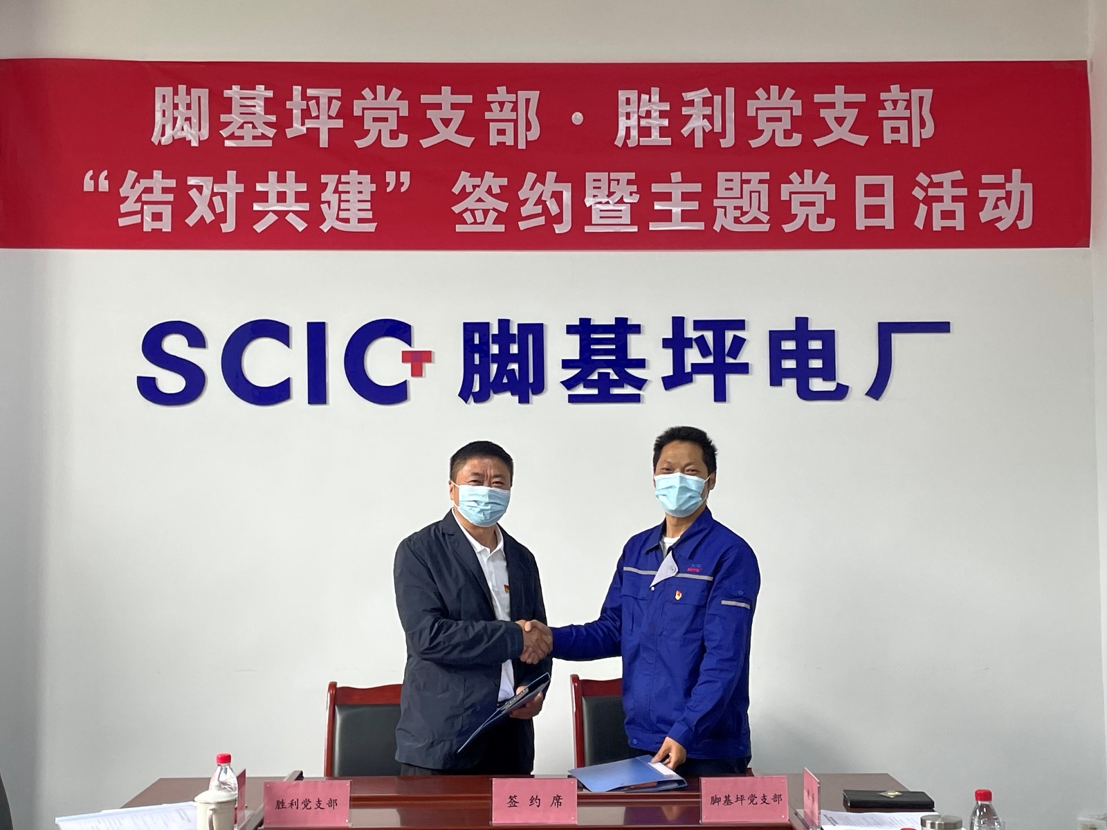 勝利電力公司副總經(jīng)理黃倫、腳基坪黨支部委員和雙方黨員代表參加此次活動。