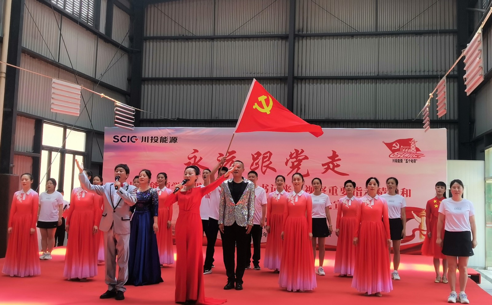 為進(jìn)一步強(qiáng)化宣貫效果,川投能源理論宣講隊(duì)以“永遠(yuǎn)跟黨走”為主題為大家奉上了一場(chǎng)立意深遠(yuǎn)、形式多樣、內(nèi)容精美的理論宣講:“動(dòng)”有以省十二次黨代會(huì)精神為內(nèi)容創(chuàng)作的音樂快板《治蜀興川新時(shí)代》,有激情澎湃的歌曲聯(lián)唱《美麗中國(guó)夢(mèng)》《領(lǐng)航》;“靜”則有根據(jù)習(xí)近平總書記來川視察重要指示精神創(chuàng)作的詩(shī)歌朗誦《永遠(yuǎn)跟黨走 譜寫新篇章》,還有感人至深的情景短劇《那雙紅布鞋》。期間,觀眾互動(dòng)搶答環(huán)節(jié)里大家積極參與、踴躍搶答,更是將現(xiàn)場(chǎng)宣講氣氛推向高潮。這場(chǎng)“動(dòng)”“靜”結(jié)合、相得益彰的宣講,用貼近群眾的“小節(jié)目”講凝神鑄魂的“大道理”,以“理論+文藝”的方式推動(dòng)習(xí)近平總書記來川視察重要指示精神和省第十二次黨代會(huì)精神深入人心、落地生根。