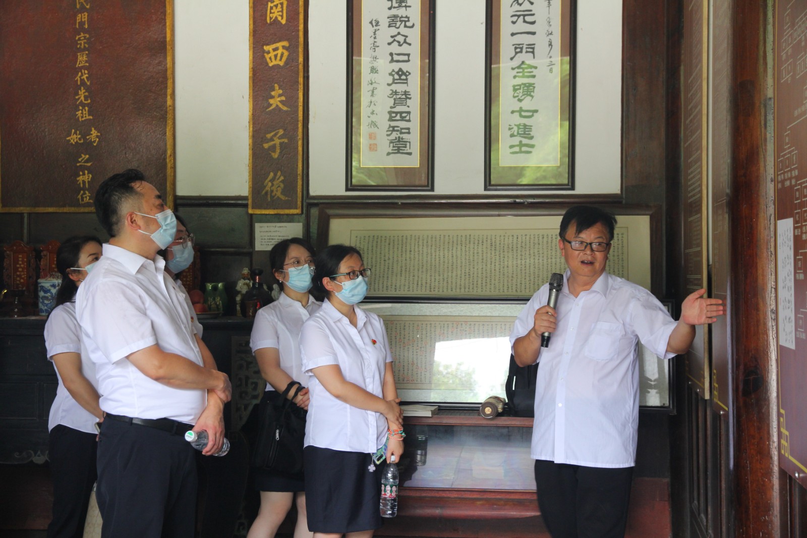 活動(dòng)在一邊唱著經(jīng)典永流傳的紅歌一邊聽著新都人文歷史中拉開帷幕。全體人員首先前往楊氏宗祠,了解“一門七進(jìn)士,宰相狀元家”楊升庵家族的優(yōu)良家風(fēng)家規(guī),在其第十四代孫楊德力老師的講解下,從清白傳家風(fēng)“四知”拒金,恪守“四重”家訓(xùn)、勤儉持家享和諧,牢記“四足”家規(guī)、淡泊名利真骨節(jié),傳揚(yáng)先祖遺訓(xùn)、先義后利傳美名四個(gè)方面,深入學(xué)習(xí)汲取楊家家風(fēng)精髓。