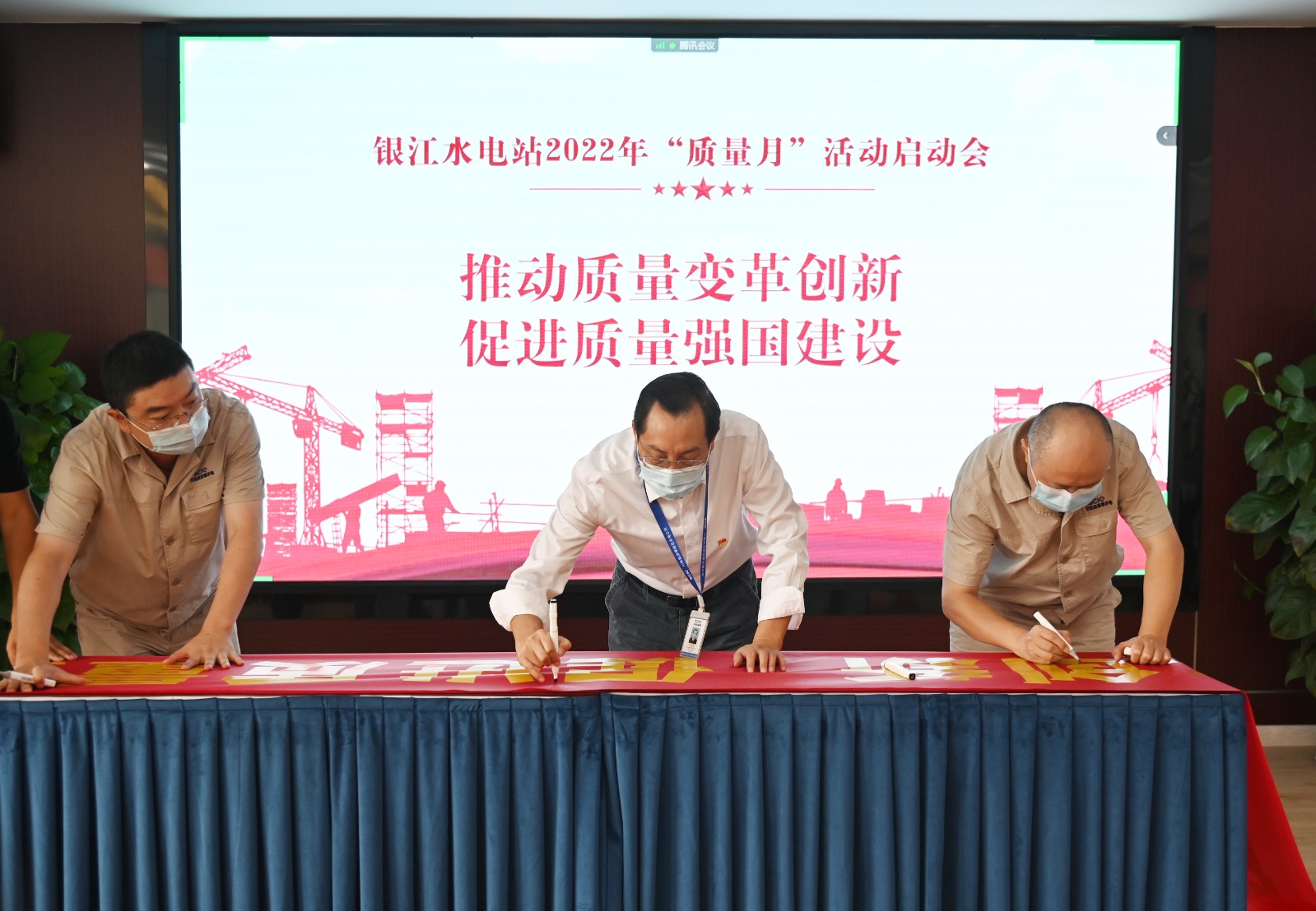 會上,公司組織學習了國家市場監管總局等21個部門聯合印發的《關于開展2022年全國“質量月”活動的通知》,宣讀了公司《關于開展銀江水電站2022年“質量月”活動的通知》,各參建單位匯報了各自“質量月”活動方案,提出了與公司活動方案相結合的具體措施。
