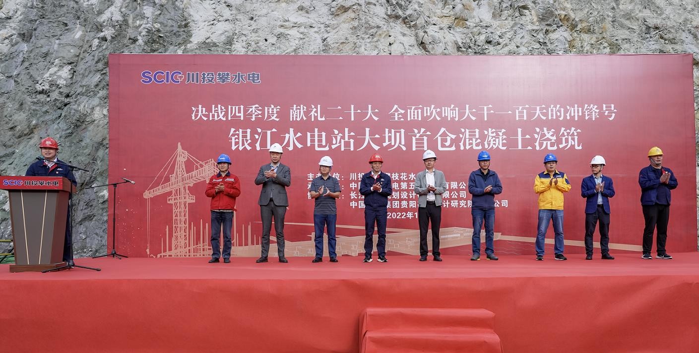 自黨的二十大勝利召開以來,攀水電公司深入學(xué)習(xí)黨的二十大精神,切實(shí)做好學(xué)習(xí)消化、理解深化、運(yùn)用轉(zhuǎn)化“三篇文章”,以迎難而上的韌勁、攻堅(jiān)克難的拼勁、只爭(zhēng)朝夕的干勁,全力推進(jìn)省委省政府和川投集團(tuán)、川投能源關(guān)于“決戰(zhàn)四季度、大干一百天”的重要決策部署,全力沖刺全年各項(xiàng)目標(biāo)任務(wù),于11月5日提前30天開始銀江水電站大壩首倉(cāng)混凝土澆筑。