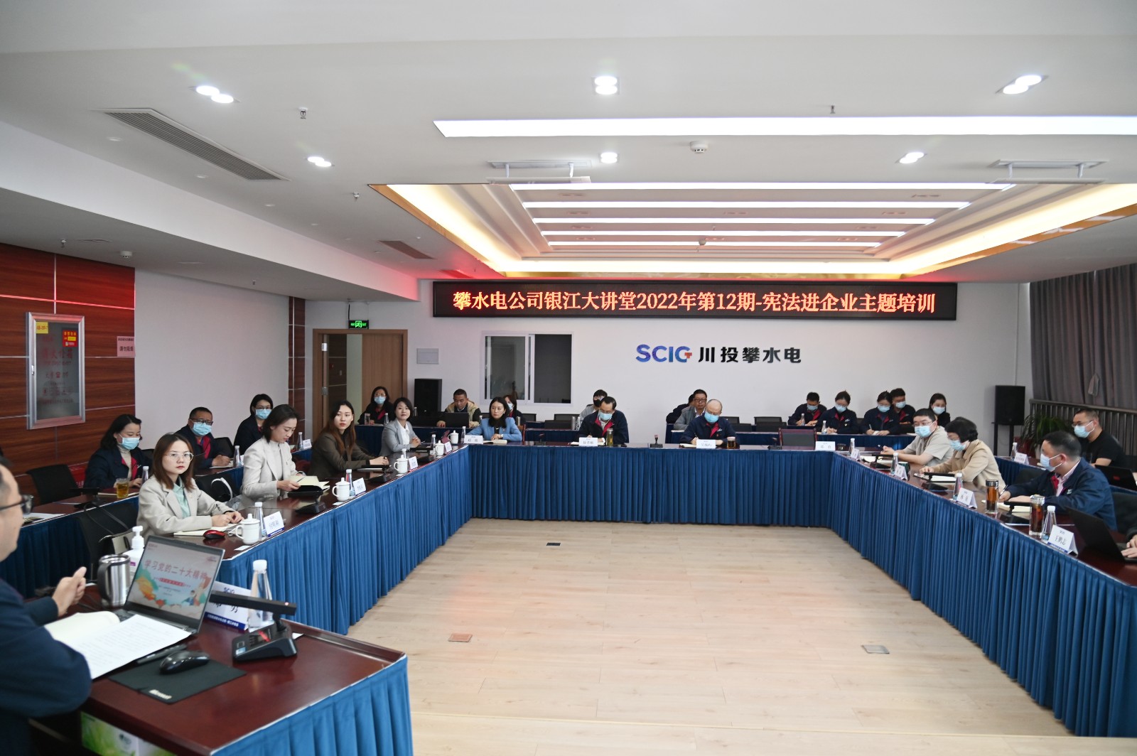 為深入學(xué)習(xí)宣傳黨的二十大精神和習(xí)近平法治思想,推動(dòng)公司全員學(xué)習(xí)宣傳貫徹黨的二十大精神,按照省國(guó)資委、川投集團(tuán)、川投能源《關(guān)于組織開展2022年憲法進(jìn)企業(yè)主題活動(dòng)的通知》和“憲法宣傳周”活動(dòng)要求,2022年12月10日,攀水電公司組織開展了憲法進(jìn)企業(yè)主題培訓(xùn),川投能源副總經(jīng)理、攀水電公司黨總支書記、董事長(zhǎng)、攀新能源公司董事長(zhǎng)徐孝剛,攀水電公司黨總支副書記、總經(jīng)理吳巍嶼,四川蜀攀律師事務(wù)所副主任趙艷出席會(huì)議,攀水電公司其他領(lǐng)導(dǎo)及員工共計(jì)30余人參加培訓(xùn)。