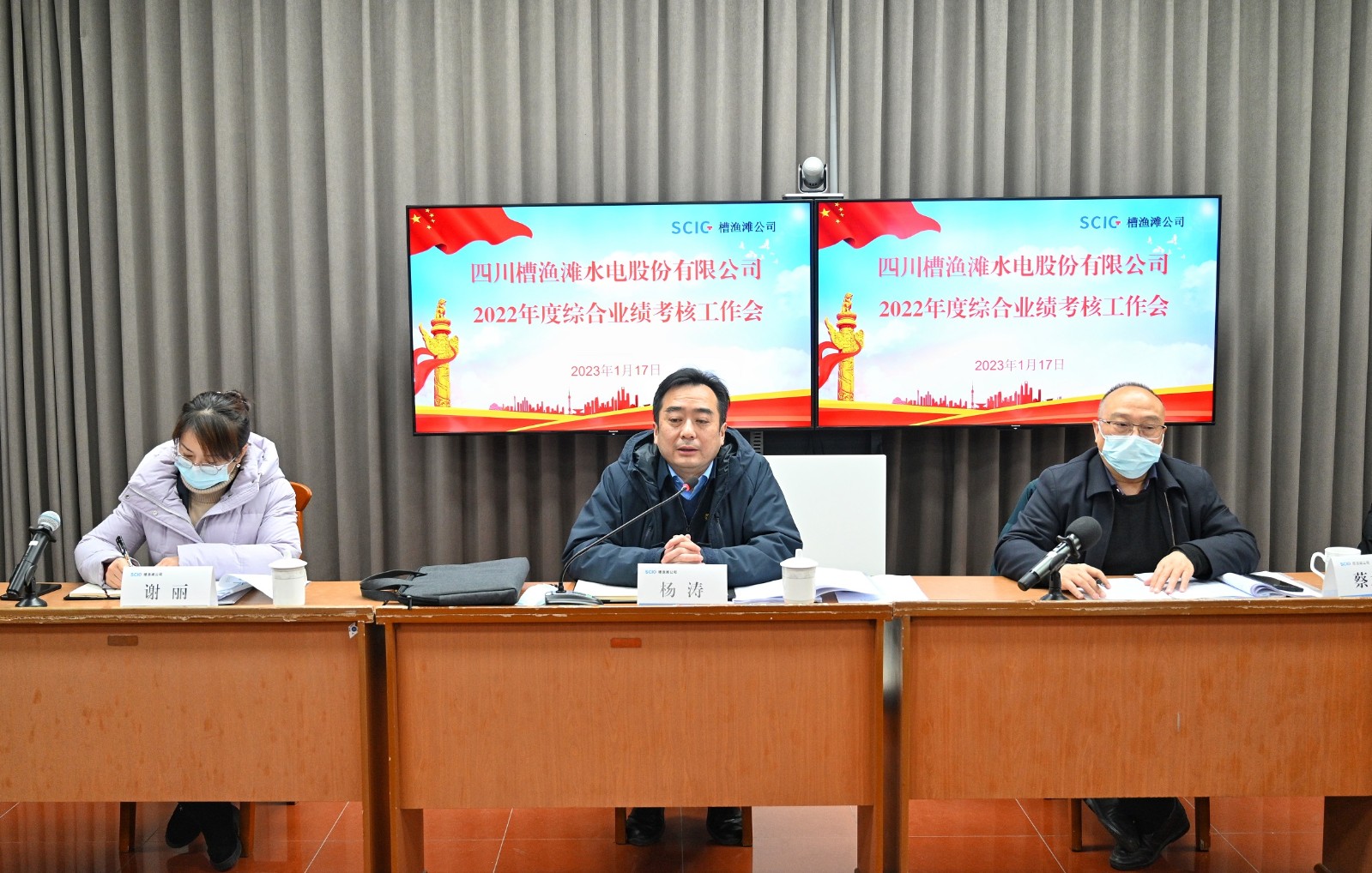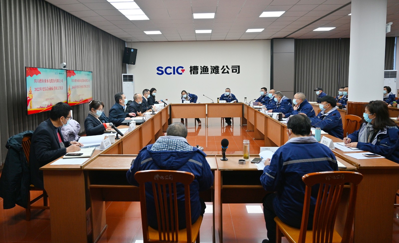 1月17日,川投電力黨委書記、董事長楊濤率隊到槽漁灘公司開展2022年度綜合業績考核,公司黨委副書記、總經理蔡承德主持會議。