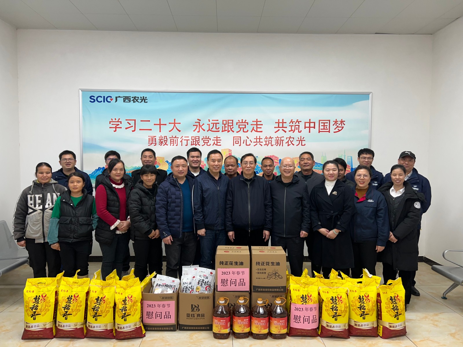 日前,徐孝剛率隊赴廣西農光公司開展節前安全檢查,攀水電公司黨總支委員、副總經理、攀新能源公司總經理周軍帶隊進行廣西農光公司2022 年度綜合業績考核工作,對廣西農光公司及所屬桂平光伏電站全體職工、運維單位人員進行了新春慰問,為大家送上了春節慰問品,把川投大家庭的溫暖帶到了遙遠的廣西。