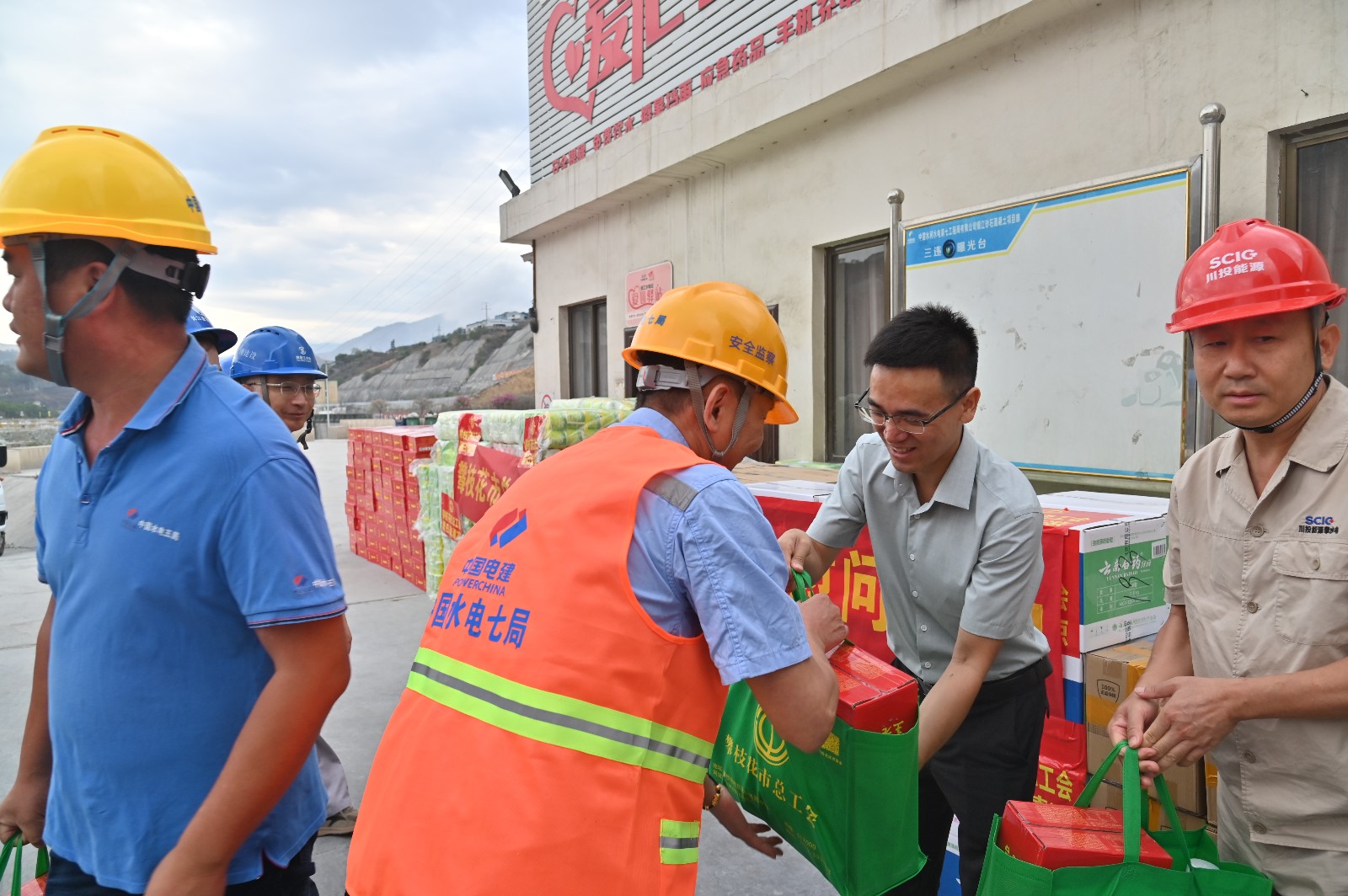 近日,攀枝花市氣溫連續突破40℃,各級工會主動作為、多措并舉推進防暑降溫工作,切實維護職工群眾安全健康權益,在銀江水電站“愛心驛站”,張平向奮戰在一線建設者們表示深深的敬意和誠摯的慰問,叮囑大家在保證工作質量、工作進度的前提下,注重自身安全,做好勞動保護,防止高溫中暑。并為長江設計、貴陽院監理、二灘建設監理、華東院監理、水電五局、水電七局、廣東源天等20家參建單位的工友代表,送上了清涼飲料、沐浴露、洗衣液、防暑藥品等500份防暑降溫清涼物資,為頂著烈日高溫堅守崗位,辛勤勞作的一線工友們送上一份清涼和關懷。