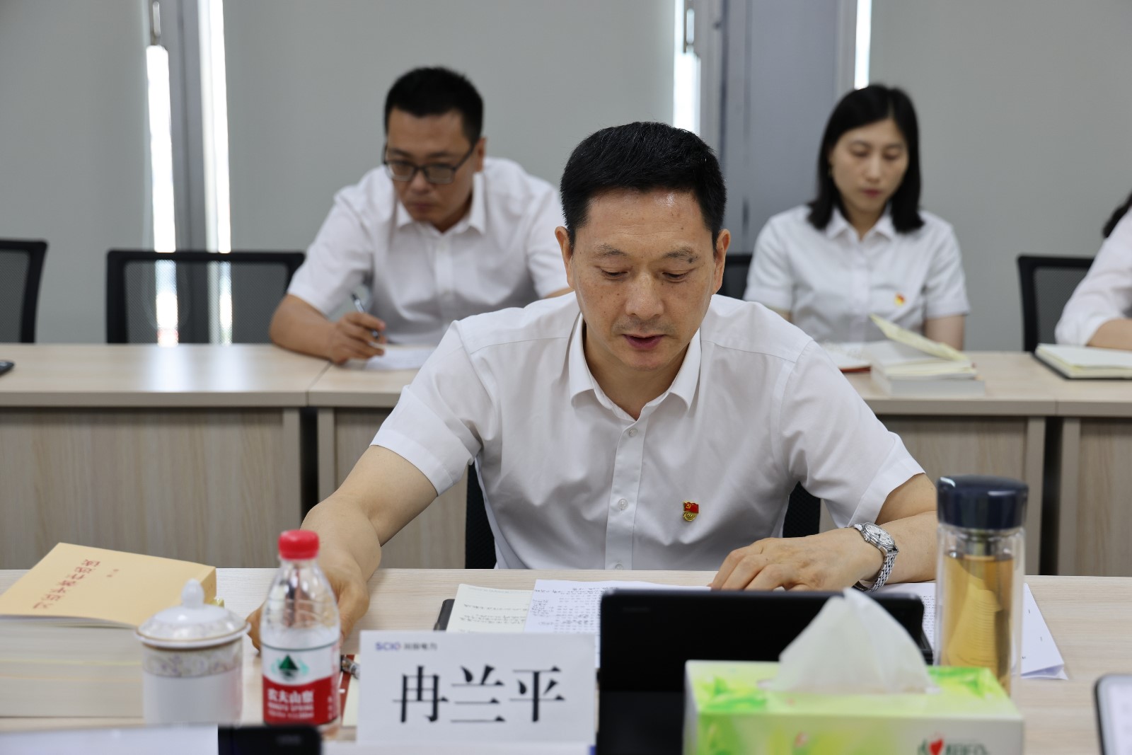 會上,公司領導班子成員分別領學了習近平總書記在中央全面深化改革委員會第二次會議上關于建設更高水平開放型經濟新體制,推動能耗雙控逐步轉向碳排放雙控的重要講話、《黨的二十大報告》《習近平著作選讀》以及《習近平新時代中國特色社會主義思想學習綱要(2023版)》相關內容。