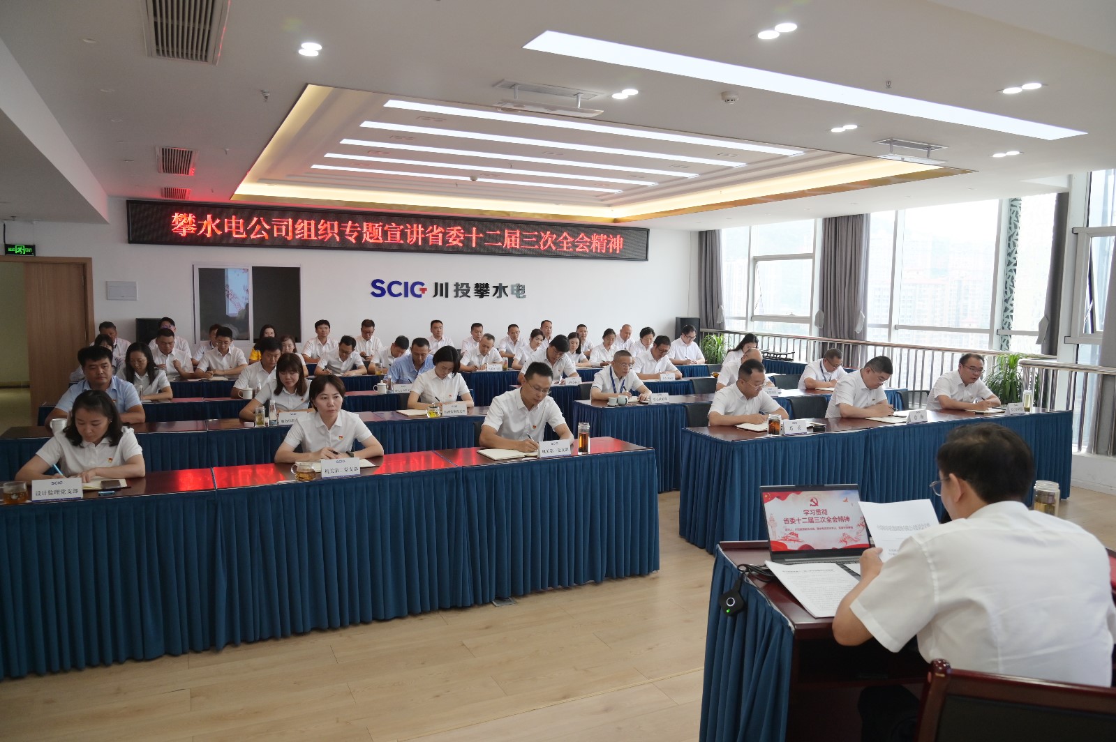 為進一步引導廣大職工深入學習貫徹省委十二屆三次全會重大決策部署,激發大家干事創業、堅定推動高質量發展的精氣神,8月19日下午,川投能源副總經理、攀水電公司黨總支書記、董事長徐孝剛進行省委十二屆三次全會精神專題宣講。公司全體黨員、職工,各參建單位黨員職工代表共計45人參加此次宣講會。
