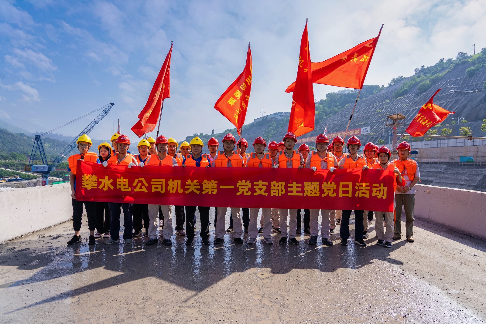 為認真貫徹落實近期中共中央政治局常務委員會研究部署防汛抗洪救災和災后恢復重建工作時,關(guān)于“基層黨組織和廣大黨員干部要充分發(fā)揮戰(zhàn)斗堡壘作用和先鋒模范作用,在防汛抗洪救災一線挑重擔、當先鋒、打頭陣”的重要指示要求。9月3日,攀水電黨總支在銀江水電站施工現(xiàn)場組織開展9月主題黨日活動,機關(guān)第一、第二黨支部、水電五局銀江項目部黨支部黨員、入黨積極分子、職工志愿者共計30余人參加。
