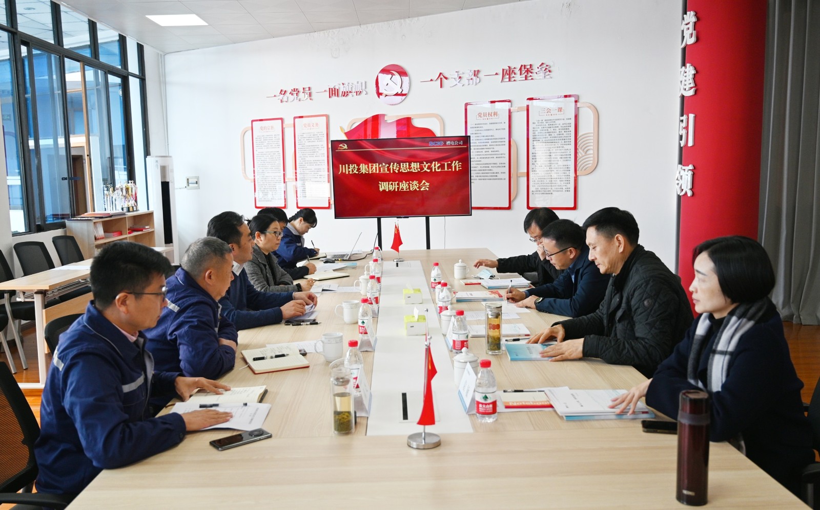 為深入學習貫徹習近平總書記對宣傳思想文化工作作出的重要指示精神,全面加強國有企業宣傳思想文化建設,確保黨的二十大精神和省委、省政府各項決策部署在企業中貫徹落實,11月16日,川投集團黨委宣傳部(群團工作部)部長何金輝一行赴川投電力所屬槽漁灘公司調研宣傳思想文化工作,川投能源黨委副書記、工會主席冉蘭平,川投電力黨委書記、董事長楊濤等陪同調研。