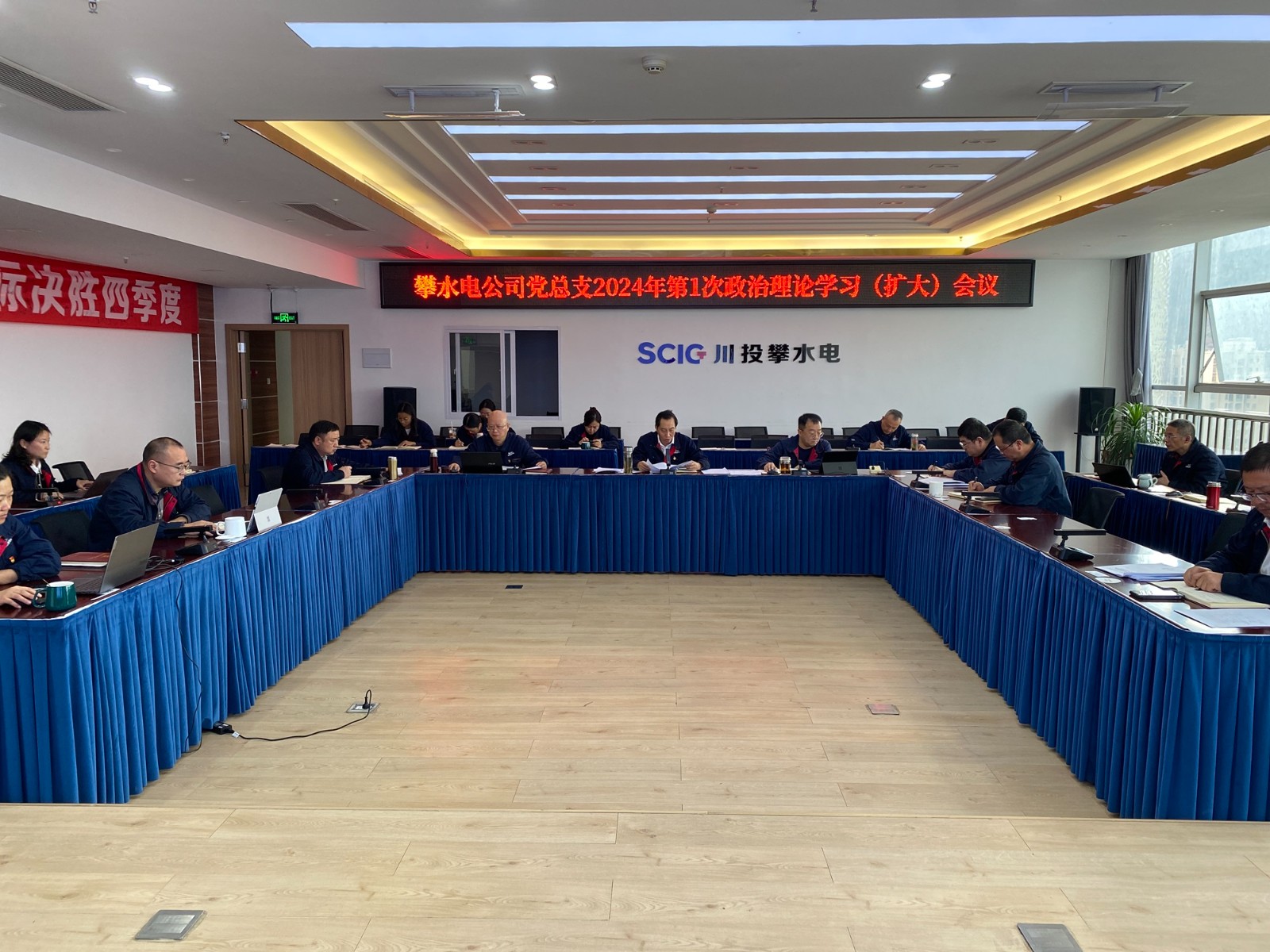 1月27日下午,攀水電黨總支在2620會議室召開了2024年第1次政治理論學(xué)習(xí)(擴大)會議,本次學(xué)習(xí)主要包括第一議題學(xué)習(xí)、上級文件精神、統(tǒng)戰(zhàn)工作、安全環(huán)保、廉政警示教育、分享式領(lǐng)學(xué)六個部分。會議由川投能源副總經(jīng)理、攀水電公司黨總支書記、董事長徐孝剛主持,黨總支政治理論學(xué)習(xí)會成員、全體中干、支部書記、其他黨員、統(tǒng)戰(zhàn)對象、入黨積極分子共30余人參加。