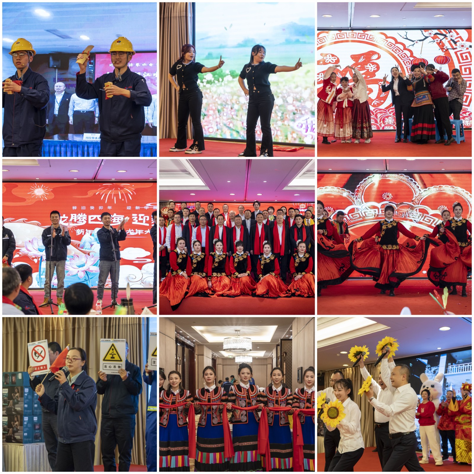 座談會后,攀水電公司組織了“銀江之春”職工文藝匯演,本次文藝匯演所有節目均由公司各部門和各參建單位員工利用休息時間自編自導自演,大家以歌舞、情景劇、快板等形式共12個節目,展現了大家在銀江水電站建設中的工作日常和酸甜苦辣。來自水電七局項目部的三句半“賀新春”,說出了電站砂石骨料系統質量管控的種種細節;計劃合同部員工們一改往日的嚴肅,以一首嘻哈版“銀江DISCO”講述了招標和合同管理中的艱辛與困難;各參建單位安全員共同參演的“安全記心間”提醒大家時刻不能忘安全;水電五局項目部快板“禮贊銀江水電站”表達了攻堅克難筑大壩的信心和決心;黨群工作部脫口秀“十大心動瞬間發布會”以沙畫的方式帶領大家重溫了川投能源職工運動會中的感人故事;活動中,公司還與攀枝花市移動公司簽訂了戰略合作協議,攜手將銀江水電站打造成“5G+智慧電廠”, 由雙方領導帶領的大合唱“龍的傳人”更是催人奮進。