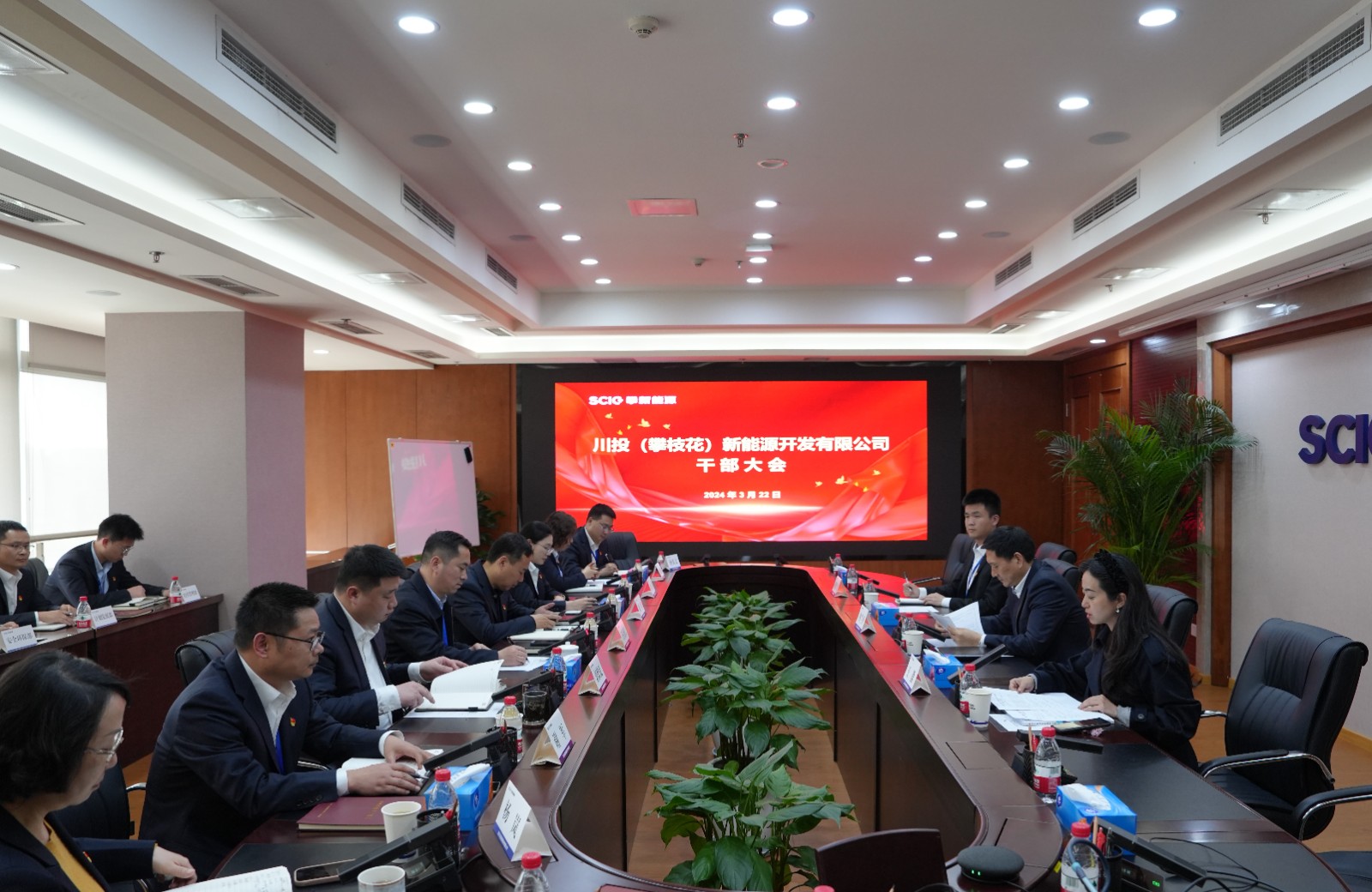3月22日下午,川投(攀枝花)新能源開發有限公司在川投大廈1508會議室召開干部大會。川投能源黨委副書記、工會主席冉蘭平出席會議并講話,總經理助理、黨委組織部/人力資源部經理王歆出席并主持會議,攀新能源公司黨支部書記、董事長王行仁出席會議。