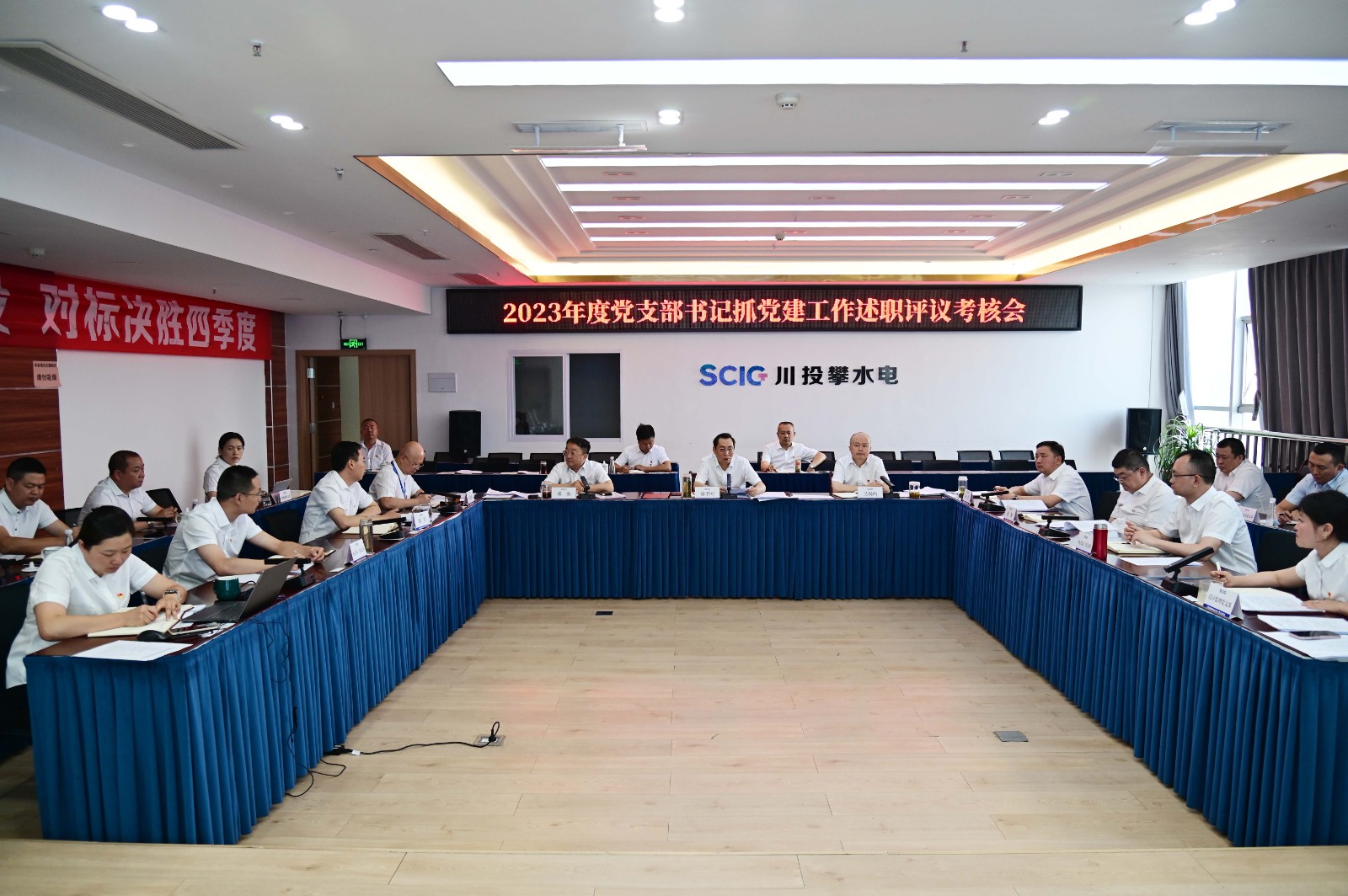 為深入學習習近平總書記關于黨的建設重要思想,進一步強化黨支部書記抓基層黨建工作,3月29日,攀水電黨總支組織召開2023年度黨支部書記抓黨建工作述職評議考核會,公司領導班子、各支部書記、支部委員、黨員代表共計25人參加。會議由公司黨總支副書記、董事會秘書、工會主席鄧勇主持。