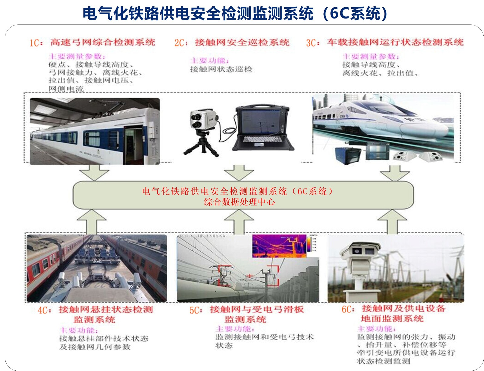 據統計,近年來鐵路接觸網供電設備故障主要原因是,供電設備狀態異常、外部環境干擾,且外部環境原因占比呈逐年上升趨勢。在鐵路安全方面,6C檢測對鐵路接觸網供電設備的安全起著不可或缺的作用,它可以對接觸網供電設備進行全方位、全覆蓋的綜合檢測,精準高效地找出設備的隱患。