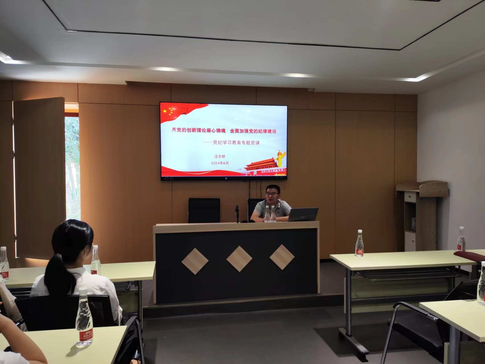 活動首先進行了“第一議題”學習,學習習近平總書記在山東考察時關于黨紀學習教育的重要講話精神。集體學習結束后,黨總支副書記、總經理助理汪志橋以《用黨的創新理論凝心鑄魂 全面加強黨的紀律建設》為題講授黨紀學習教育專題黨課。他指出,這次黨紀學習教育是黨中央作出的重大部署,是加強黨的紀律建設、推動全面從嚴治黨向縱深發展的重要舉措。大家務必高度重視,以高度的思想自覺、政治自覺、行動自覺,知行知止、令行禁止,以黨紀學習教育賦能公司生產經營中心工作,把黨紀學習教育激發出的熱情干勁迅速轉化為凝心聚力、擔當作為、干事創業上。