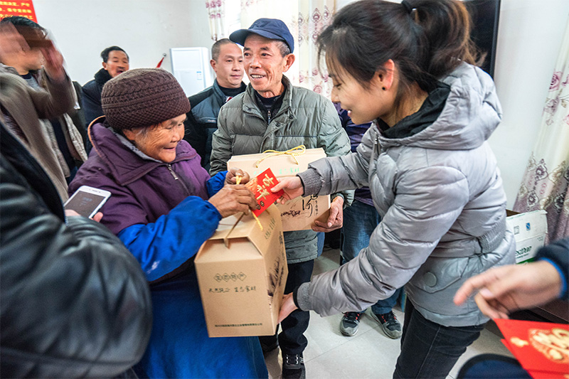 茶話會后,朱莉送上了田灣河公司支援村委會的辦公設備,并對在場貧困戶發(fā)放代表喜慶、祝福的新年紅包和慰問品。隨后在村黨支部曾書記帶領下,田灣河公司一行人實地上門走訪部分行動不便未能參加活動的貧困戶,關(guān)心他們的生活起居、衣食住行,并幫助他們打掃衛(wèi)生、貼春聯(lián)、送祝福。一片忙碌的景象,讓貧困戶提前感受到節(jié)日的喜慶。