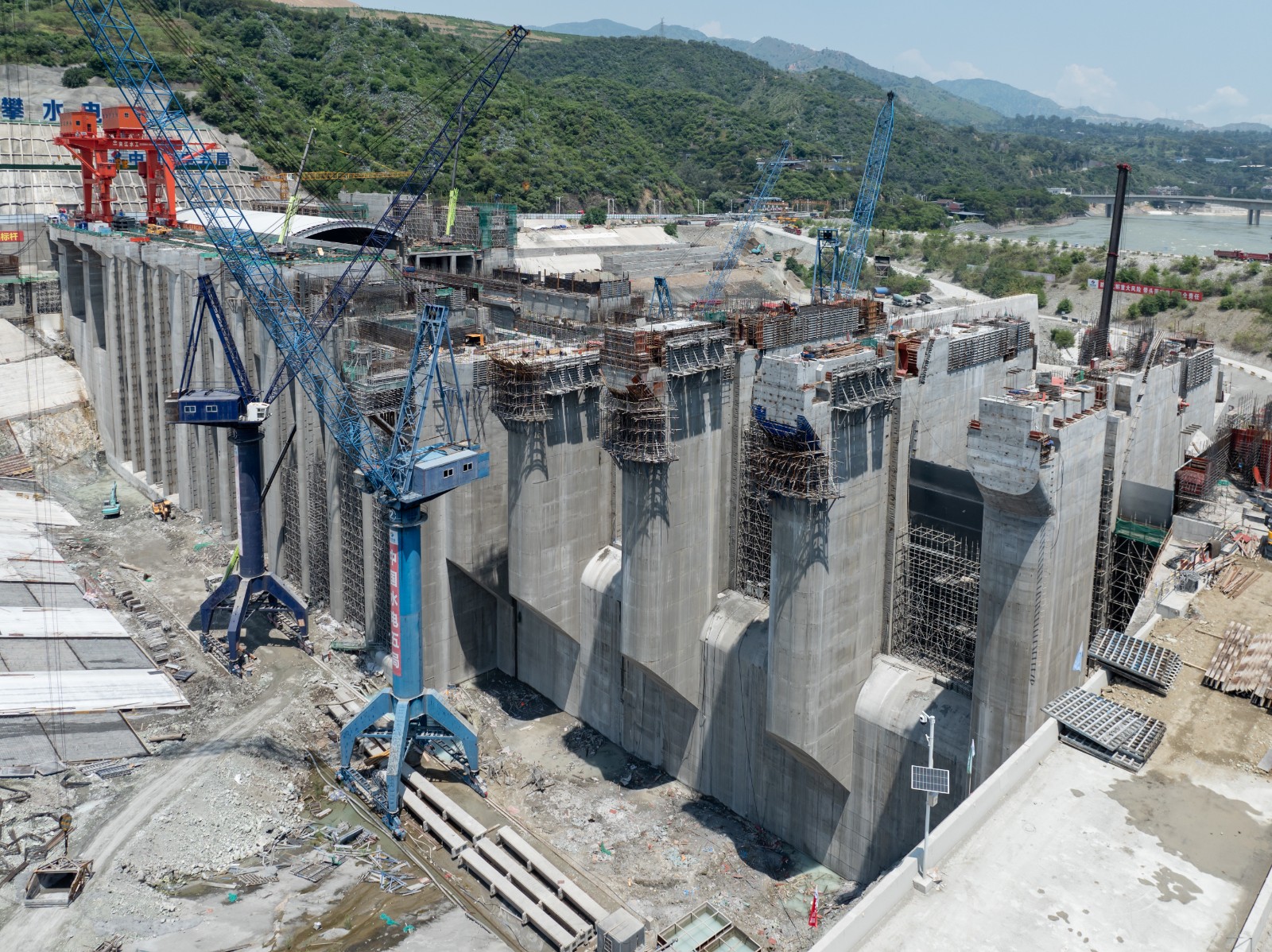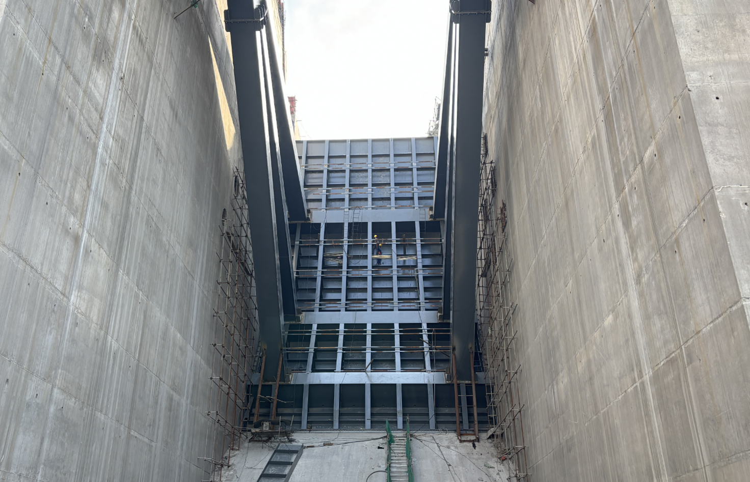 徐孝剛表示,金屬結(jié)構(gòu)安裝是實現(xiàn)工程下閘蓄水目標的核心任務,自7月下旬首節(jié)弧形工作門吊裝以來,在不到3個月的時間內(nèi),將要完成近萬噸的安裝工程量,工期緊、任務重、難度大,參建各方超前謀劃、提前部署,深入開展設(shè)計及施工優(yōu)化,多次專題研討安裝方案并組織專家論證,突破多項常規(guī)方法,采取鋼絞線提升裝置安裝尾水事故檢修門、臨時平臺配合汽車吊站位安裝弧形工作門、門槽安裝及其二期混凝土澆筑工序循環(huán)優(yōu)化等一系列超常規(guī)措施,大幅縮短了安裝工期,取得了階段性成果,希望各參建單位持續(xù)保持昂揚斗志、乘勢而上,協(xié)同并進、合力攻堅,為全面實現(xiàn)工程建設(shè)目標不懈奮斗。