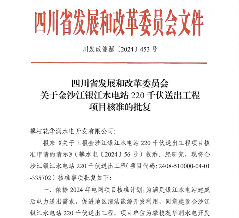 9月6日,川投能源所屬金沙江銀江水電站220千伏送出工程成功取得四川省發改委核準批復,為順利實現蓄水發電目標再增“助推器”。