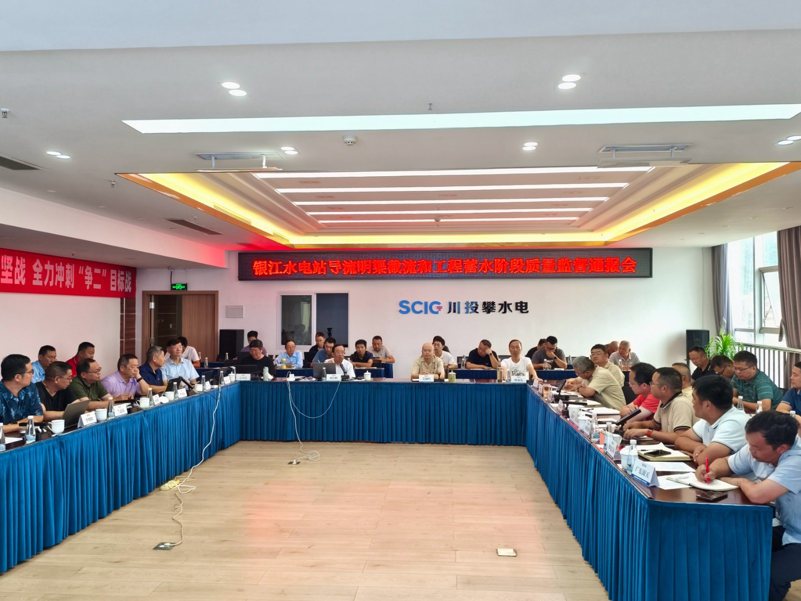 9月21下午,在進行多次檢查和交流后,專家組組長劉學鵬在公司2620會議室主持召開了銀江水電站導流明渠截流和工程蓄水階段質量監督通報會,攀水電公司領導、各部門負責人及各參建單位負責人共40余人參加會議。專家組與各參建單位進行了充分的討論并交換意見,形成了銀江水電站導流明渠截流和工程蓄水階段質量監督報告。報告指出,截至目前,與導流明渠截流及工程蓄水相關的土建工程、金屬結構工程、安全監測工程基本完成,剩余尾工及消缺處理等工作已有計劃安排并在抓緊施工;導流明渠截流及工程蓄水組織機構已建立,導流明渠截流及工程蓄水技術要求已提交,實施方案完成初稿編制,部分技術文件正在完善中。銀江水電站具備擇機進行導流明渠截流及工程蓄水條件。