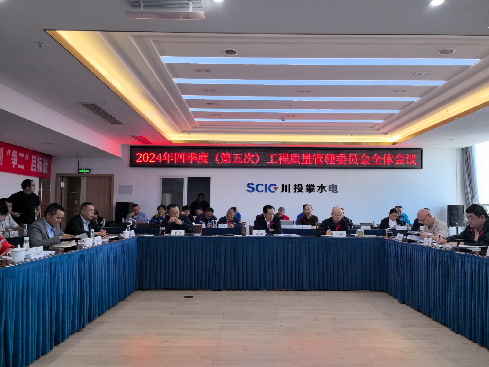 11月16日下午,在銀江水電站全力沖刺首臺機組發電之際,攀水電公司在2620會議室組織召開了2024年四季度工程質量管理委員會全體會議,會議由川投能源副總經理、攀水電公司黨總支書記、董事長、質委會主任徐孝剛主持,攀水電公司黨總支副書記、總經理、質委會主任吳巍嶼及公司領導、各部門、長江設代處、各監理部、第三方檢測機構、各施工單位項目部負責人及質量負責人共計40余人參加會議。