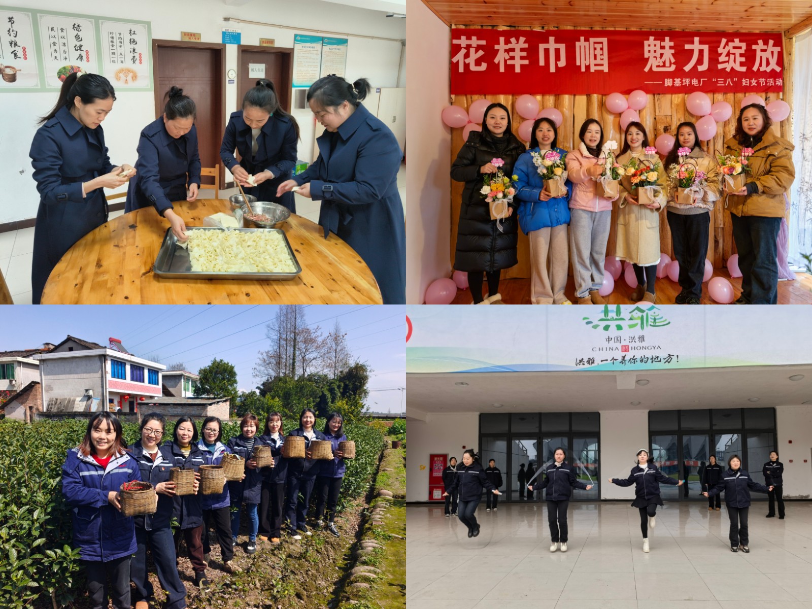 川投電力工會組織開展“巾幗心向黨,奮進新征程”系列慶祝活動,組織女職工開展集體趣味活動,結(jié)合實際案例,宣傳《婦女權(quán)益保障法》《女職工勞動保護特別規(guī)定》等法律法規(guī),舉辦“玫瑰書香”主題閱讀分享活動等;槽漁灘公司工會組織了手鼓表演、工間操、《婦女權(quán)益保障法》知識答題活動;天彭電力公司工會開展了漢服沉浸體驗、漢服主題攝影、傳統(tǒng)文化講座與交流、讀書分享會;高奉山工會小組開展戶外踏青,體驗農(nóng)耕文化;百花灘工會小組開展健康徒步走、跳繩、搖呼拉圈等趣味運動會;腳基坪工會小組開展了插花藝術(shù)沙龍、座談分享會;玉田工會小組開展了徒步登山、觀看女性健康宣傳片和“共建家園情”包餃子活動。