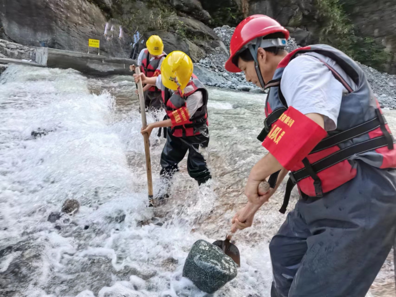 以黨員和骨干員工組成的天彭電力“星光”黨員先鋒隊,詮釋著責(zé)任和傳承。2022年9月1日,回龍溝上游爆發(fā)山洪那晚,沙金車間取水樞紐——底格欄柵壩整個壩面三分之一的鋼結(jié)構(gòu)、部分混凝土被破壞,二分之一壩面嚴(yán)重淤積。險情導(dǎo)致沙金車間引水全部中斷,公司整個發(fā)電來水量減少三分之一,不僅影響機(jī)組發(fā)電,彭州及周邊40萬人飲用水安全也將亮起紅燈。秉承“搶險不冒險”的原則,在強(qiáng)降雨停后的第一時間,沙金車間迅速出動搶修人員,先鋒隊隊員們帶頭沖鋒在前,展開了一場保發(fā)保供保民生的搶險“攻堅戰(zhàn)”。在車間主任周繼良的帶領(lǐng)下,大家火速集結(jié),緊急投入搶險工作。僅用時23小時、比原計劃提前2天,成功搶通供水生命線。