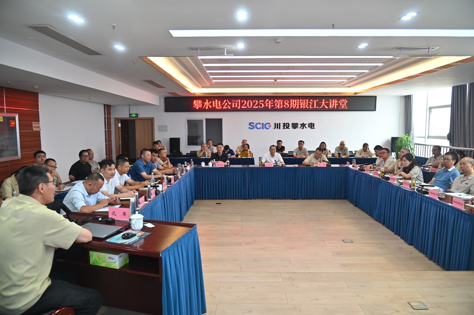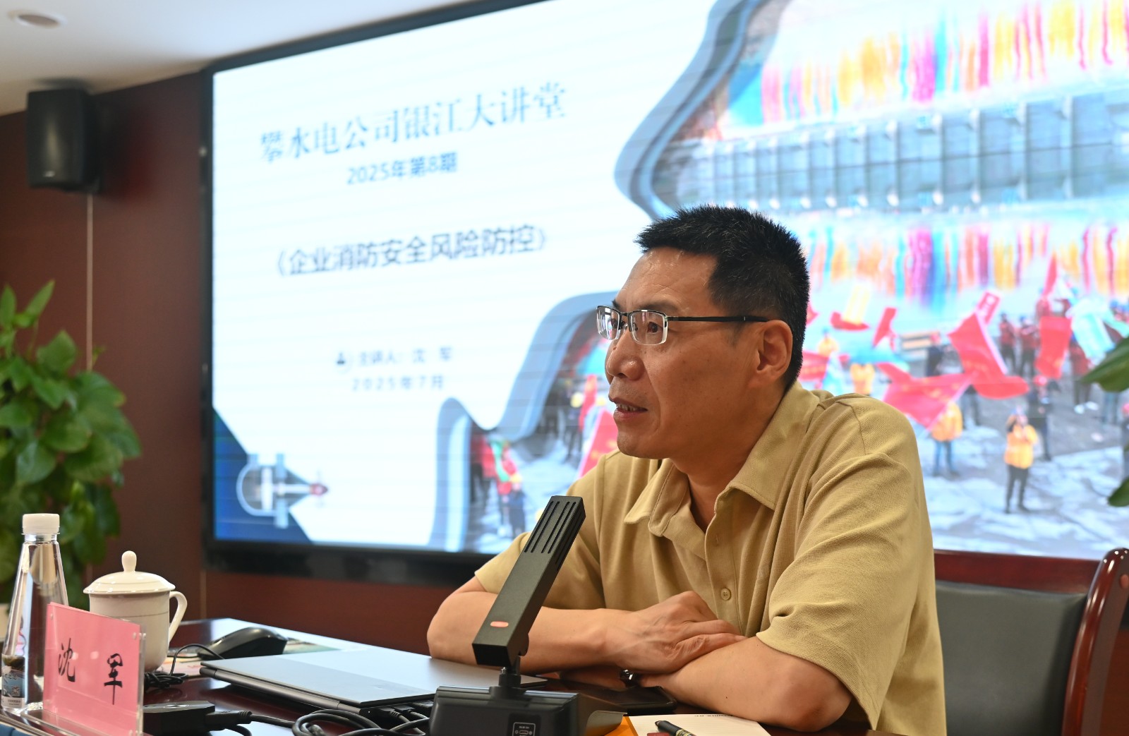為切實提升全員消防應急處置能力,筑牢企業安全防線,7月27日,攀水電公司舉辦2025年第8期“銀江大講堂”,特邀四川省消防工作專家庫資深專家、高級工程師沈軍講授企業消防安全風險防控知識,四川省消防救援總隊攀枝花市支隊周立波政委出席指導,公司領導、各部門員工、參建單位代表共計60余人參訓。