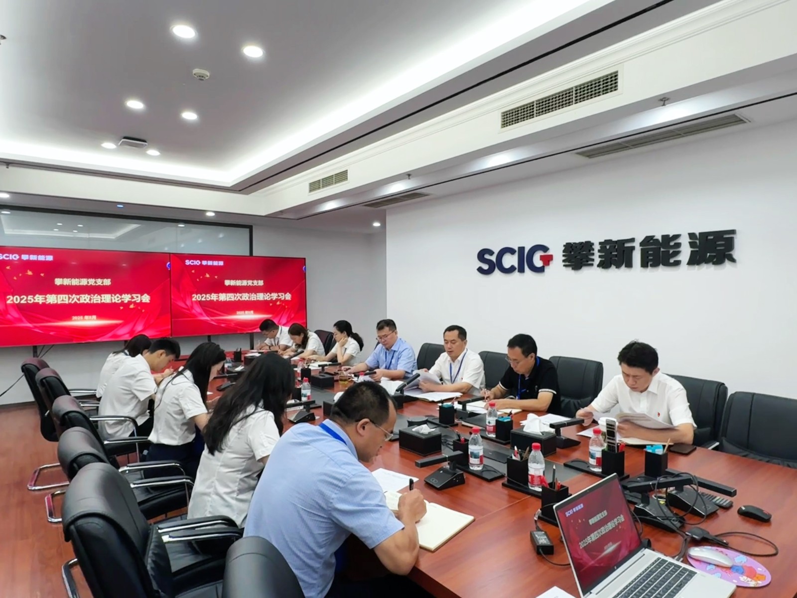 8月28日,攀新能源黨支部召開2025年第四次政治理論學習(擴大)會,黨支部書記、董事長主持會議,領導班子成員及全體黨員參會。本次學習會采取會前自學、集中學習、集中自學與研討交流相結合的方式進行,旨在持續深化黨的創新理論武裝,特別是深入學習領會習近平總書記關于黨的作風建設的重要論述,推動全面從嚴治黨向縱深發展。