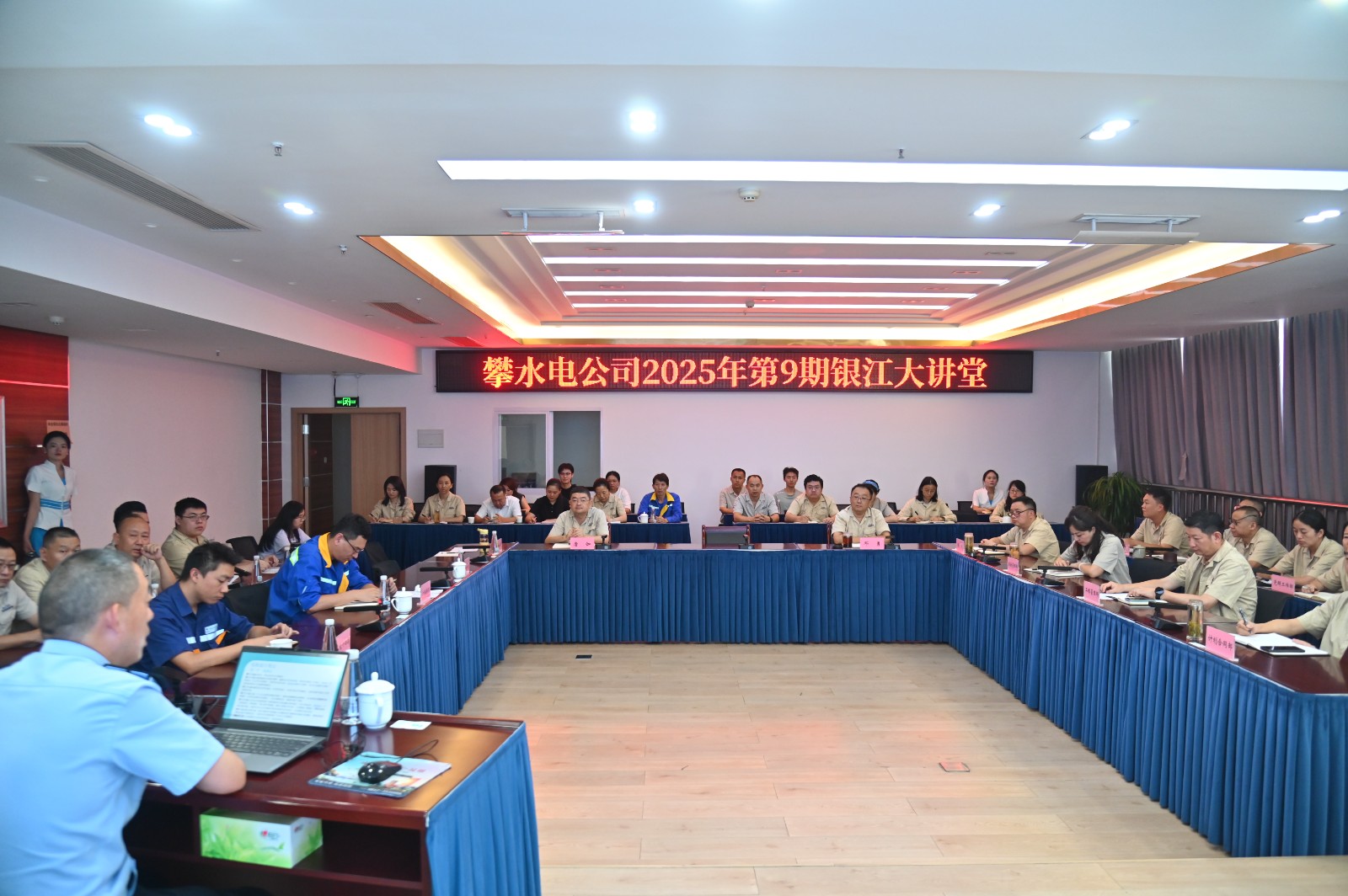 為進一步增強員工道路交通安全意識,筑牢日常出行安全防線。9月18日,公司組織開展了2025年第9期銀江大講堂,邀請到攀枝花市交警支隊三大隊副大隊長任幫華,專題講授道路交通安全。任幫華從事公安交通管理工作27年,經(jīng)驗豐富、業(yè)務(wù)精湛,榮立二等功、三等功、多次榮獲全市道路交通管理先進個人,曾參加成都大運會交通安保工作。公司領(lǐng)導(dǎo)、員工及參建單位代表共計40余人參與。