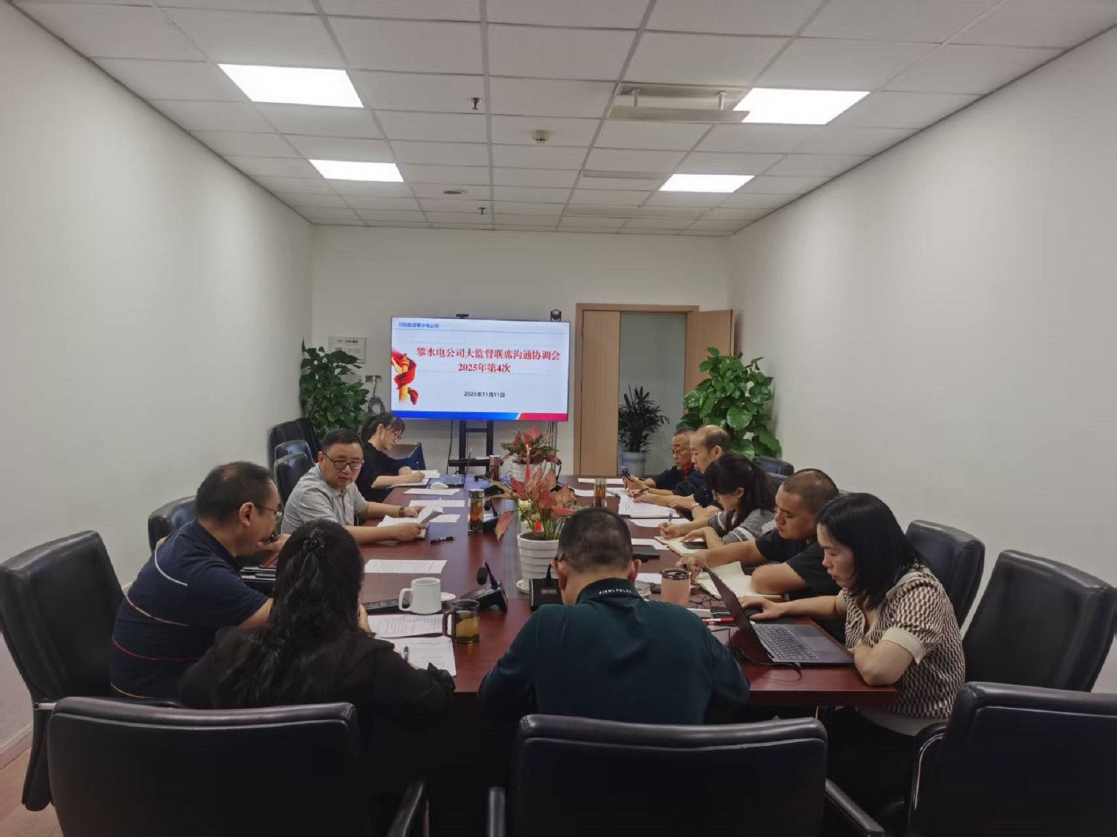 為進(jìn)一步鞏固擴(kuò)大深入貫徹中央八項規(guī)定精神精神學(xué)習(xí)教育成果,扎實推進(jìn)作風(fēng)建設(shè)與監(jiān)督效能提升,11月11日,攀水電公司召開2025年第4次大監(jiān)督聯(lián)席溝通協(xié)調(diào)會。會議由公司黨總支委員、紀(jì)檢小組長楊銳主持,各部門負(fù)責(zé)人及支部紀(jì)檢委員共12人參加。