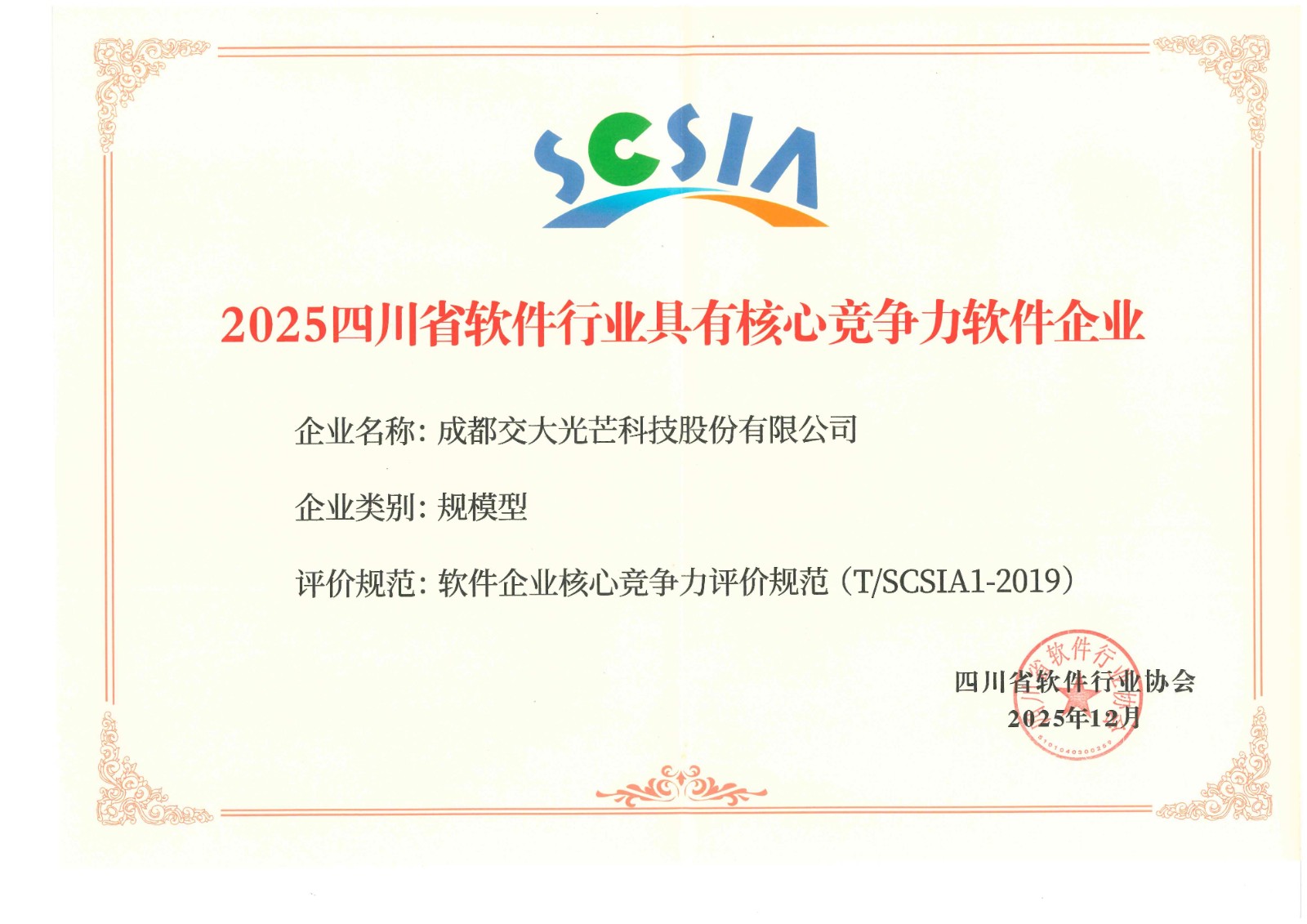 本次評(píng)選由四川省軟件行業(yè)協(xié)會(huì)組織專家依據(jù)《軟件企業(yè)評(píng)估規(guī)范》《軟件產(chǎn)品評(píng)估規(guī)范》等標(biāo)準(zhǔn),對(duì)企業(yè)經(jīng)營(yíng)能力、產(chǎn)品競(jìng)爭(zhēng)力、技術(shù)創(chuàng)新能力等多項(xiàng)指標(biāo)進(jìn)行綜合評(píng)估,全面考察企業(yè)軟件技術(shù)綜合實(shí)力。交大光芒本次獲評(píng),標(biāo)志著公司在技術(shù)創(chuàng)新、產(chǎn)品研發(fā)與行業(yè)應(yīng)用等方面的表現(xiàn)獲得行業(yè)認(rèn)可。