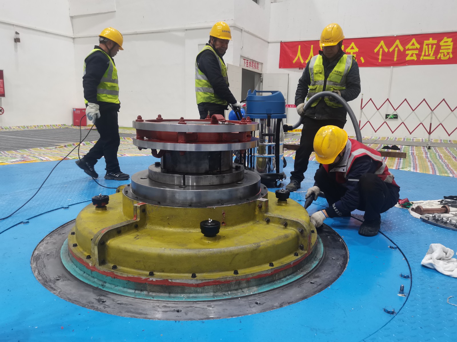攻堅克難安全管控,打好檢修“保衛(wèi)戰(zhàn)”。檢修現(xiàn)場,全體參檢人員秉持“嚴、細、實”的工作作風,規(guī)范操作,安全作業(yè),在轟鳴的廠房內(nèi)開展設(shè)備“健康保衛(wèi)戰(zhàn)”。安全旁站監(jiān)督貫穿檢修全過程,實現(xiàn)了“零違章、零事故、零傷害”的安全既定目標,充分驗證了安全管理體系的有效性與可靠性。通過科學規(guī)劃工序、強化現(xiàn)場管控,本次檢修有序完成了25項標準項目,以及完成上下導軸承油槽蓋及導電環(huán)裝置兩項技改和消除轉(zhuǎn)輪等重要設(shè)備的非常規(guī)缺陷。全面達成檢修目標,為3#機組長期穩(wěn)定運行提供堅實保障。