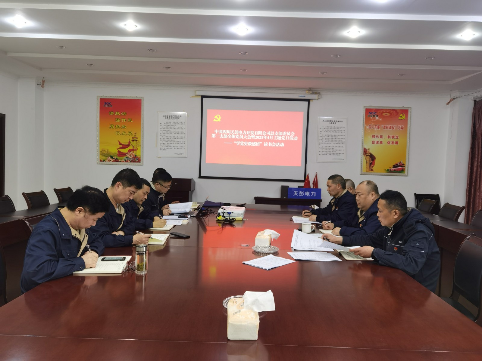 按照公司黨總支關于黨史學習教育的安排,4月27日下午,川投能源天彭電力第一黨支部全體黨員在二樓會議室開展了“學黨史 談感悟”黨史學習教育讀書會主題黨日活動, 公司黨總支書記、總經(jīng)理陳忠參加了活動,活動由第一黨支部書記何剛主持。