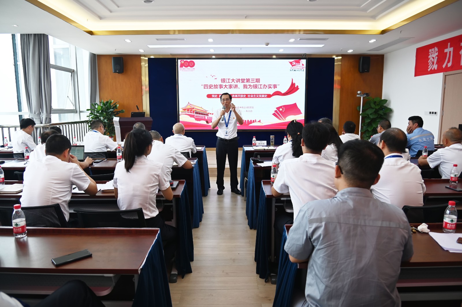 6月6日上午,川投能源攀水電公司開展銀江大講堂第三期“四史故事大家講、我為銀江辦實事”微黨課演講活動,為大家帶來了一場別開生面的黨史教育,公司及參建單位領導、全體黨員職工、聯建支部黨員代表共50余人聆聽了微黨課。