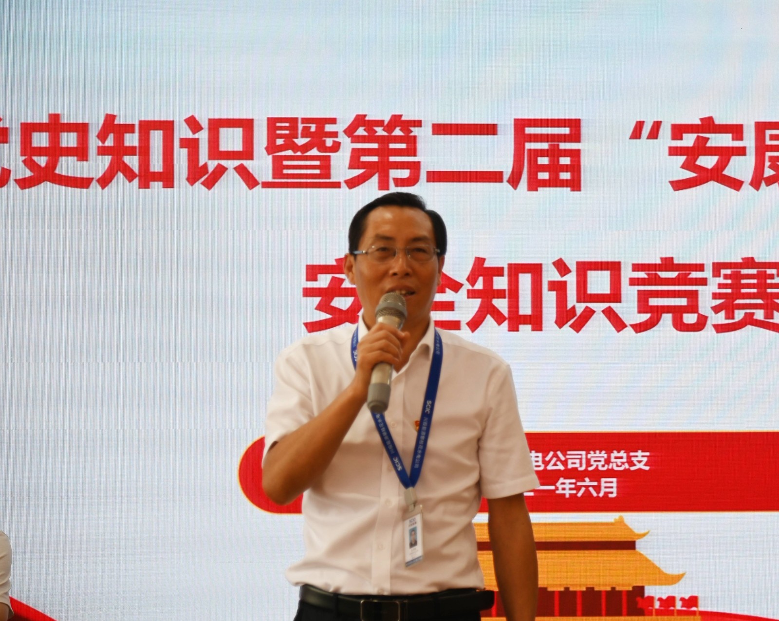 公司黨總支委員、董事會秘書、工會主席鄧勇在開幕致辭中講到:本次知識競賽一方面是深入開展黨史學習教育,回顧黨的光輝歷程,謳歌黨的豐功偉績;另一方面是踐行“落實安全責任,推動安全發展”的安全生產月活動主題,目的就是在全銀江水電站范圍內掀起新一輪黨史知識、安全知識學習熱潮,激發黨員干部群眾為銀江工程辦實事的熱忱,形成以學促行的良好習慣,讓黨史教育和安全意識更加深入人心。