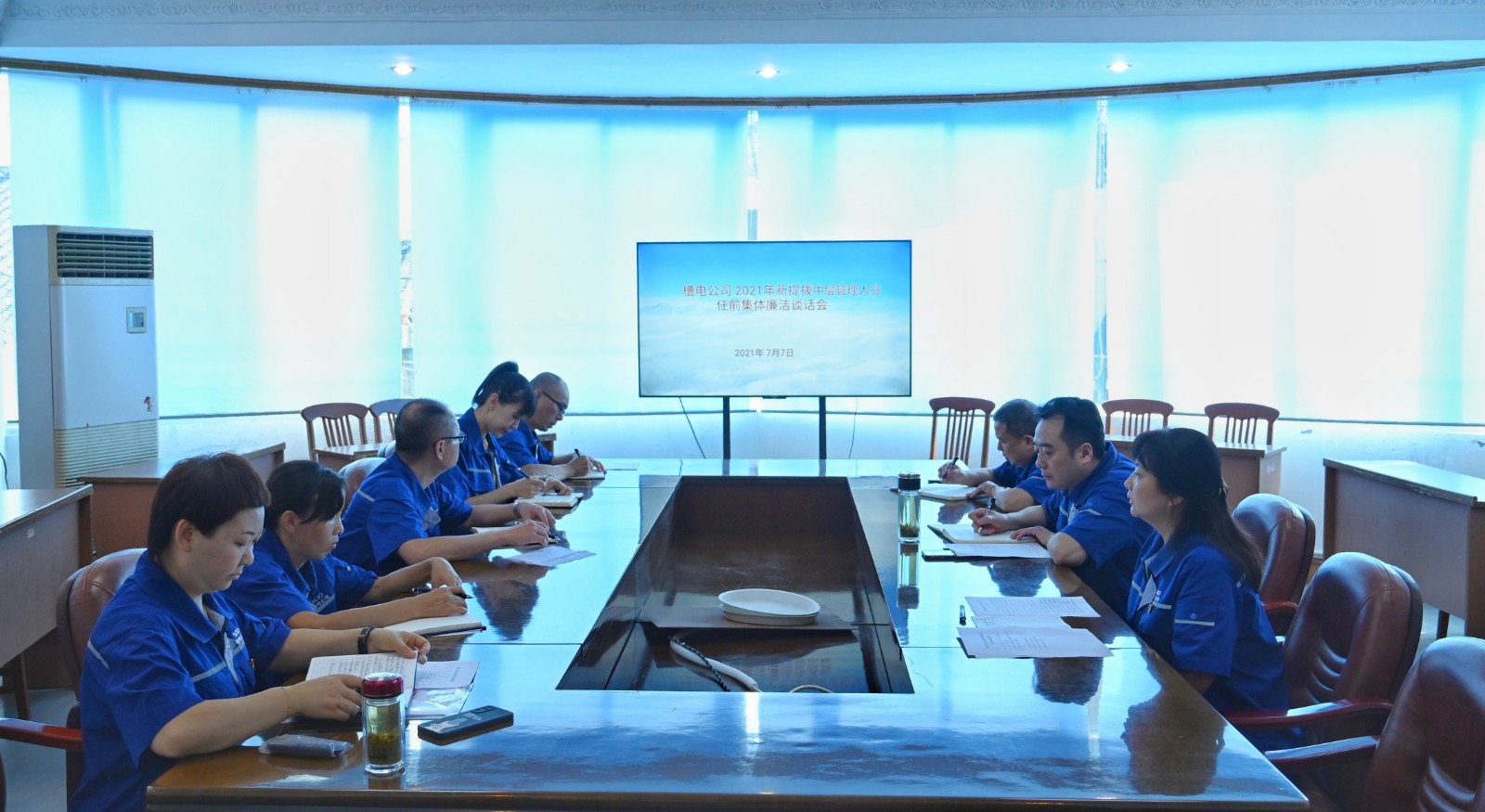 7月7日,槽漁灘公司召開新提拔中層管理人員任前集體廉潔談話會(huì)。公司黨委書記、董事長(zhǎng)楊濤、公司總經(jīng)理何光富、公司紀(jì)委書記謝愛東對(duì)2021年競(jìng)聘上崗的5位部門正、副職管理人員進(jìn)行了任前廉潔談話。