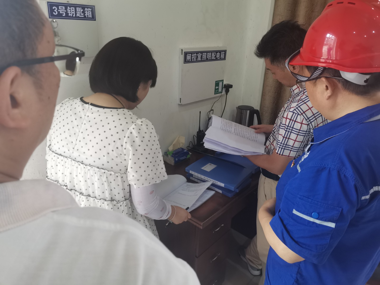 督查組一行在電廠大壩現場聽取了公司副總經理、電廠廠長蔣玉兵就槽漁灘電廠防洪度汛工作的安排、部署及落實情況匯報;隨后對槽漁灘電廠防洪物質的儲備情況以及防洪預案、防洪值班情況、隱患排查、上級防洪文件的傳達學習情況等資料進行了仔細檢查。
